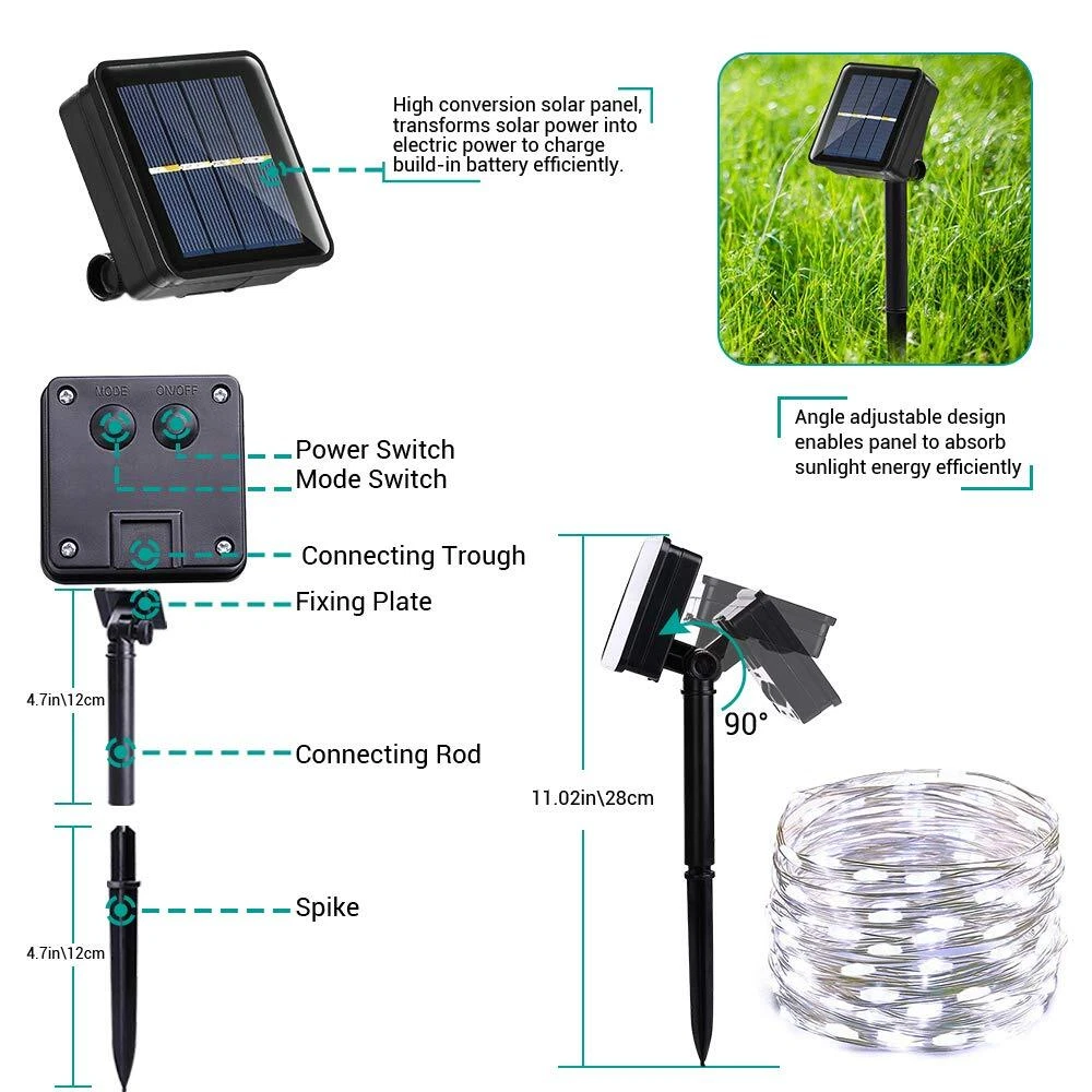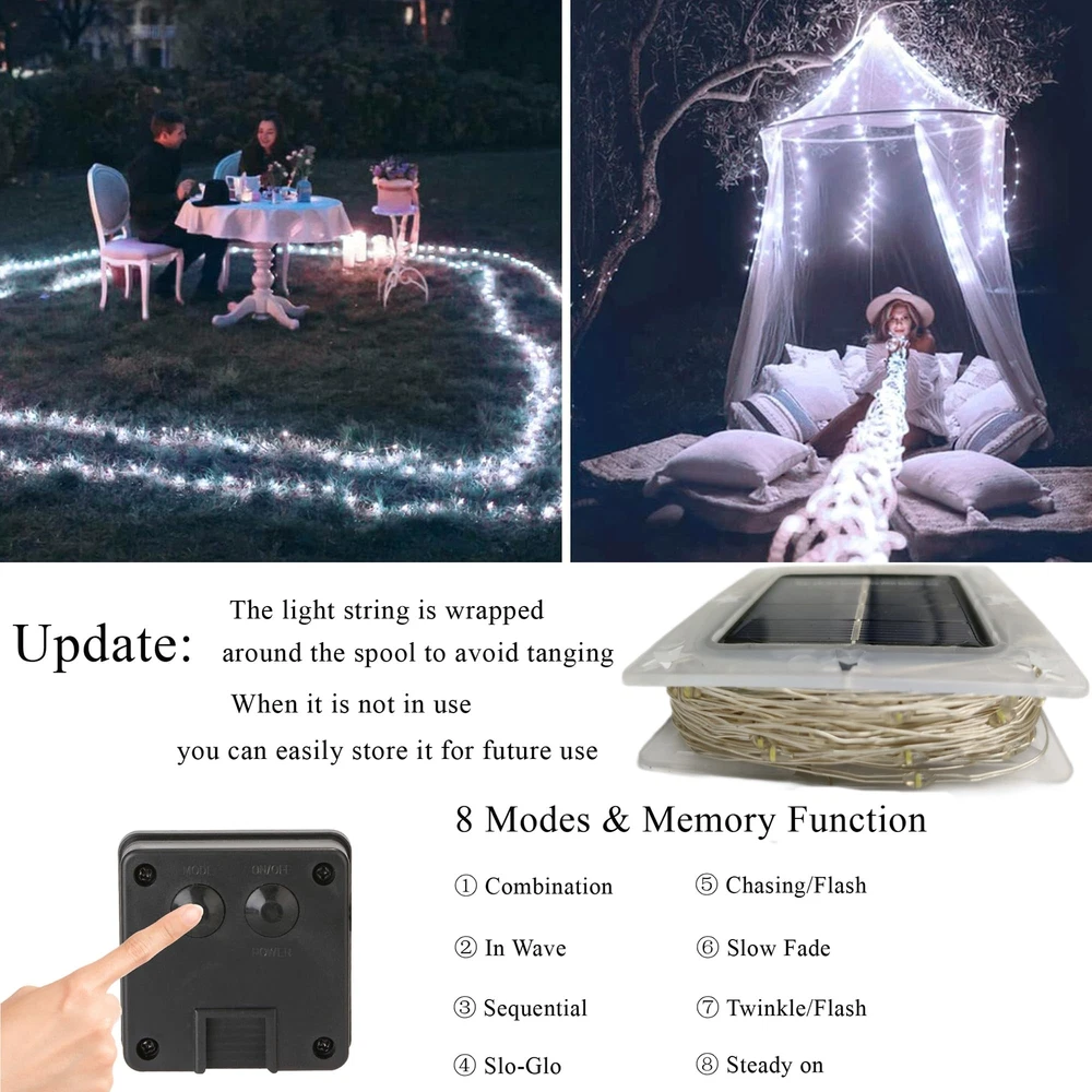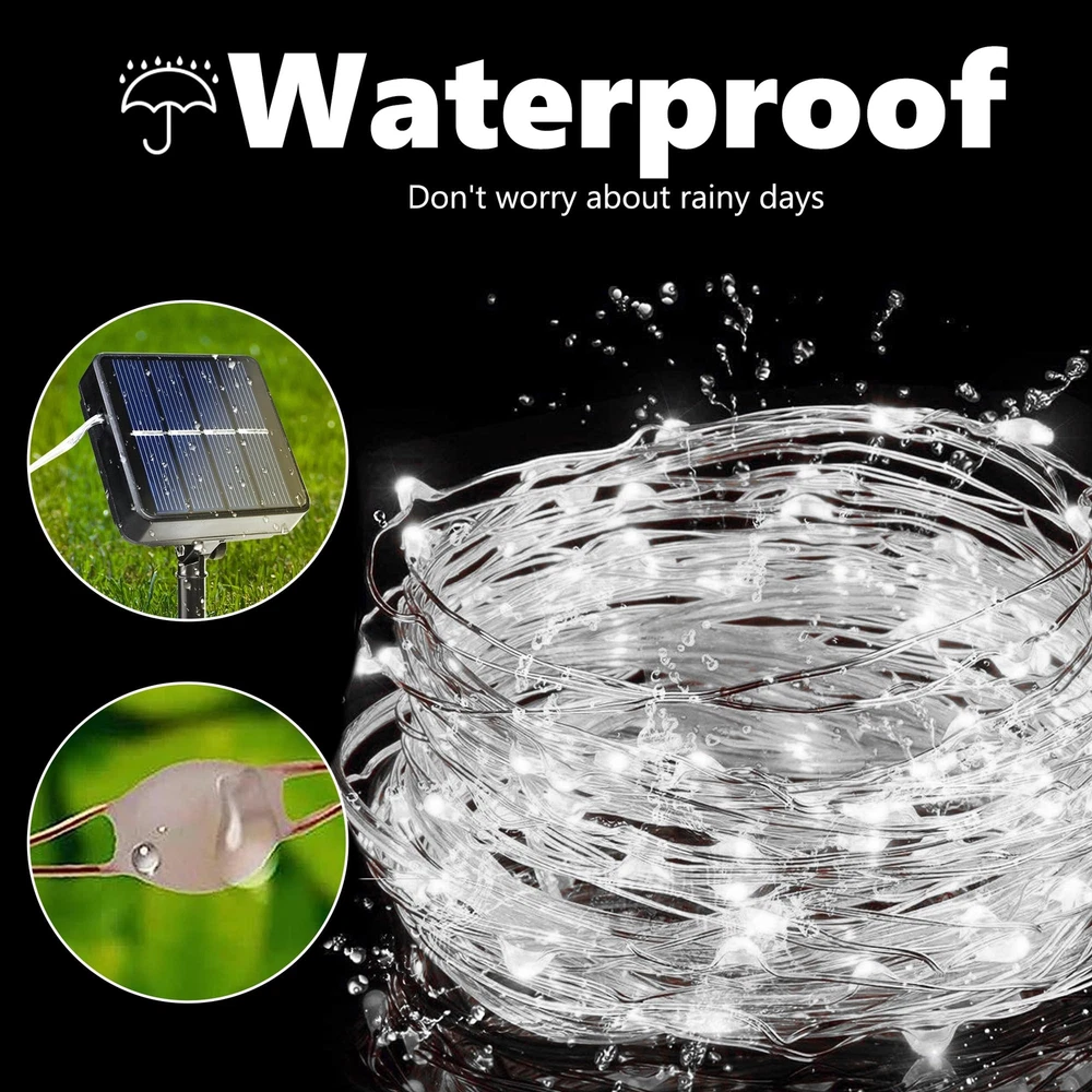 Solar Powered and Auto On/Off: Orange purple Christmas string lights powered by solar energy with no extra electric cost or battery replacement needed. The light sensor charges the lights during the day and turns them on automatically at night Flexible DIY Christmas String Lights: On 33ft ultra-thin and high-quality bendable black wire, the solar orange lights conform to any shape you want, with steady 360 degree viewing angle which illuminate in every direction. Also, they easy to store and ready for next use. 8 Modes and Memory Function: Choose from 8 modes including waves, combination, sequential, slo-glo, chasing/flash, slow fade, twinkle/flash, and steady on. The IP44 waterproof battery case withstands light rain and snow, suitable for indoor and outdoor use Waterproof: With an IP65 rating, these solar Christmas lights are designed to withstand all weather conditions, including heavy rain and snow, making them suitable for indoor and outdoor use Widely Used Solar String Lights: These solar-powered string lights are perfect for Halloween, Christmas, weddings, holidays, gardens, yards, lawns, fences, porches, trees, roofs, and decks
