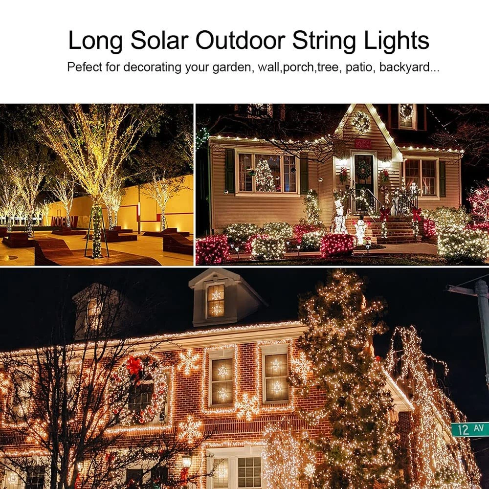 Eco-friendly & Energy-saving: The solar string lights are powered with a built-in rechargeable 1200 mAh battery,which has large capacity for whole night lighting require.the string light will automatic illuminate at dark and off at dawn,work up to 12 to 18 hours after full charge.Adopting high-efficiency solar panels,it automatically absorbs sunlight and converts it into electricity during the day, no external power supply is needed, energy saving and emission reduction Continuous Shining Day and Night: Advanced battery technology ensures sufficient power, even on cloudy days can continue to shine, up to 8 hours of lighting time at night, allowing you to enjoy a warm night 8 Lighting Modes: The string lights outdoor waterproof create different aesthetic atmosphere with various light modes: Combination, in waves, sequential, slow glow, chasing/flash, slow fade, twinkle/flash, and steady-on Waterproof & Durable: IP44 waterproof design, no fear of rain, suitable for outdoor gardens, terraces, balconies and other environments, all year round, anytime and anywhere for you to light up.And the string lights also have good weather resistance and are able to work stably in a variety of climatic conditions, including high and low temperatures, humidity and sandy environments. This makes LED string lights perfect for outdoor decoration and lighting Bendable Copper Wires(Silver Color Wires): The solar fairy string lights inclued 3-copper wires.Extra long bendable copper wire could be shaped into any symbols.No need for complicated wiring, just fix the solar panel in the direct sunlight, hang the light strings at will, and start your eco-lighting journey instantly.With light weight and small size, it is portable and convenient for camping and traveling