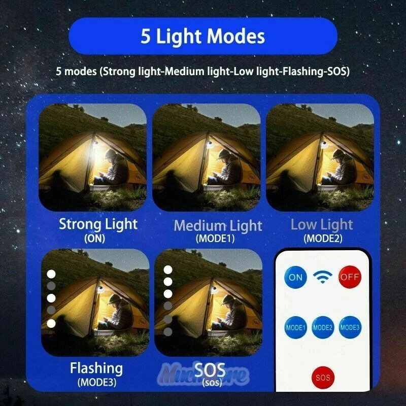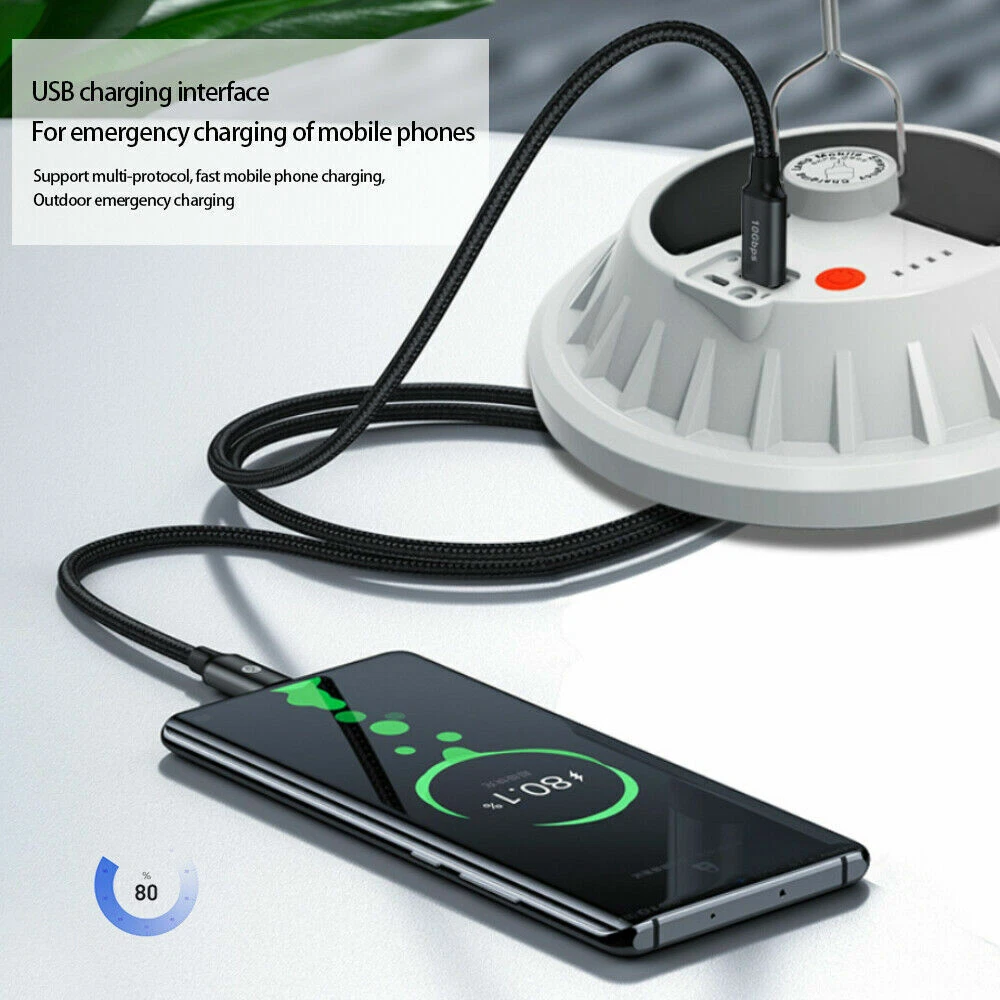 Solar USB LED Rechargeable Camping Lantern Light Emergency Lamp Remote Control ***USA Seller - Quick Postage - Same Day Dispatch *** Fast Free Delivery If You Have Any Issue Contact Us Description: Ultra-high brightness: Equipped with 120 crazy high-brightness LEDs, uniform lighting and large lighting area. High light transmittance PC lampshade, soft and comfortable light. Easily illuminate the entire room, very suitable for camping, hiking, fishing, repairs, emergency use when power outages. Two charging modes: built-in 3 lithium batteries (3600mAH) and a new monocrystalline silicon solar photovoltaic panel, which can be charged by USB cable or solar energy. With battery indicator, you can control battery usage in real time. It can also be used as an emergency power bank to charge mobile phones, tablets, earphones and other devices through the USB output interface. Long lasting life: using 3 batteries as a power source and charging via USB within 6 hours, it can provide an amazing luminous flux of 2000 lumens for 6-48 hours, and its service life is longer than most LED lights on the market. 5 lighting modes and dimmable: Just press the switch of the solar chandelier to adjust the brightness. Choose high light, medium light, low light, fast strobe or low frequency flash to meet your requirements With foldable hook & a wide range of uses: IPX4 waterproof solar light, sturdy and durable, long service life. Using the hook, you can carry it with you and hang it anywhere. It is very suitable for any outdoor activities, such as backpacking, hiking, camping, fishing, yard dinner, etc. Features: Type: Solar Emergency Light Material: PVC Color: White Input voltage: 3.7-4.2 (V) Protection Class: IP65 Battery capacity:3600mAh Diameter:160mm/6.29inch Height:45mm/1.77inch Lighting time: 6-48 hours Lighting gear: Strong light-Medium light-Low light-Strobe-SOS Power display: Smart four-gear electric display Switch control: traditional switch + remote control Power supply:USB charging+Solar charging Package Includes: 1 x Solar Emergency Light 1 x Remote Control 1 x USB Cable
