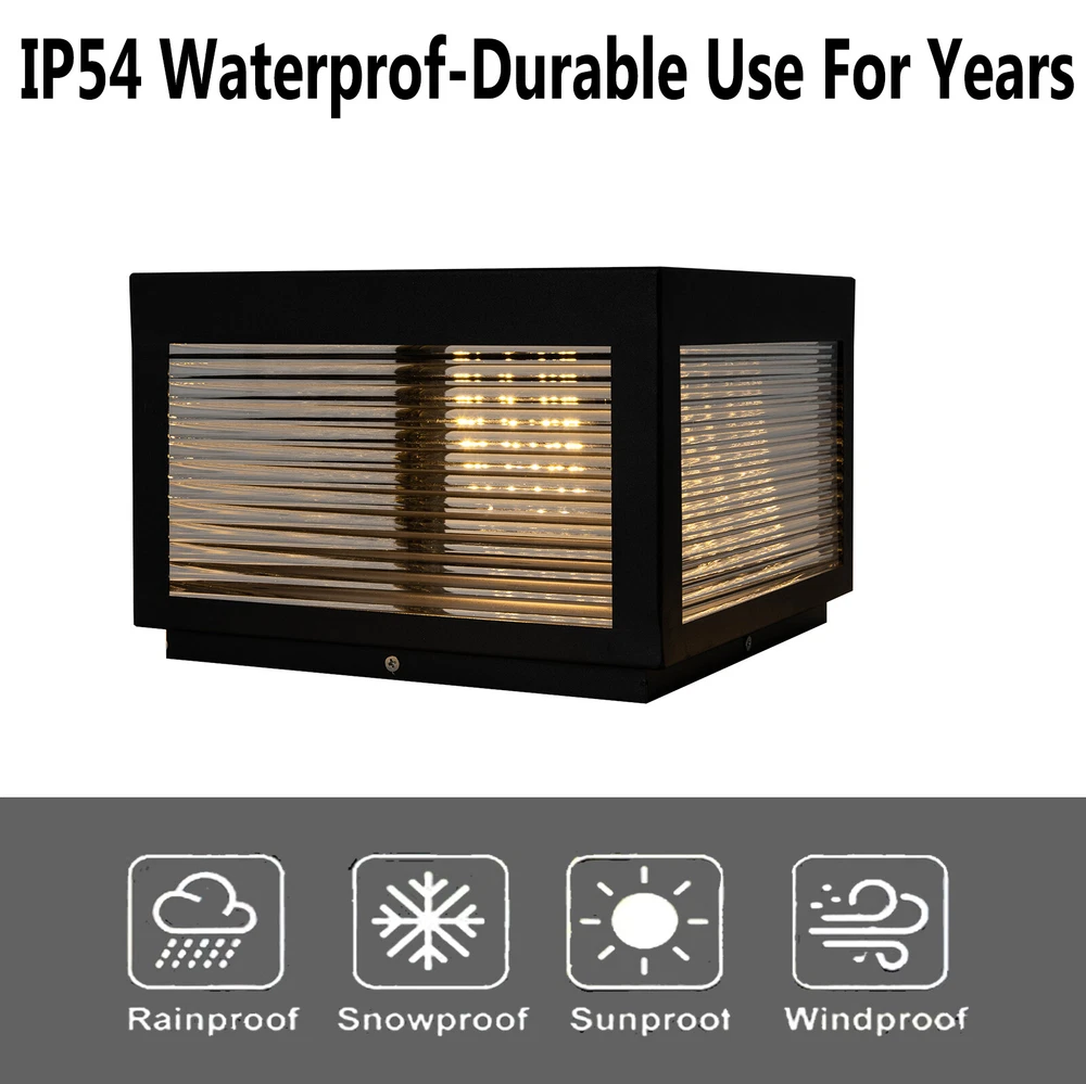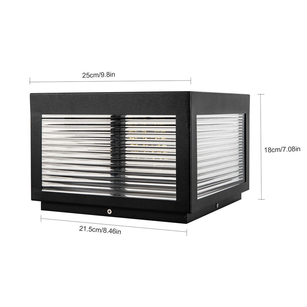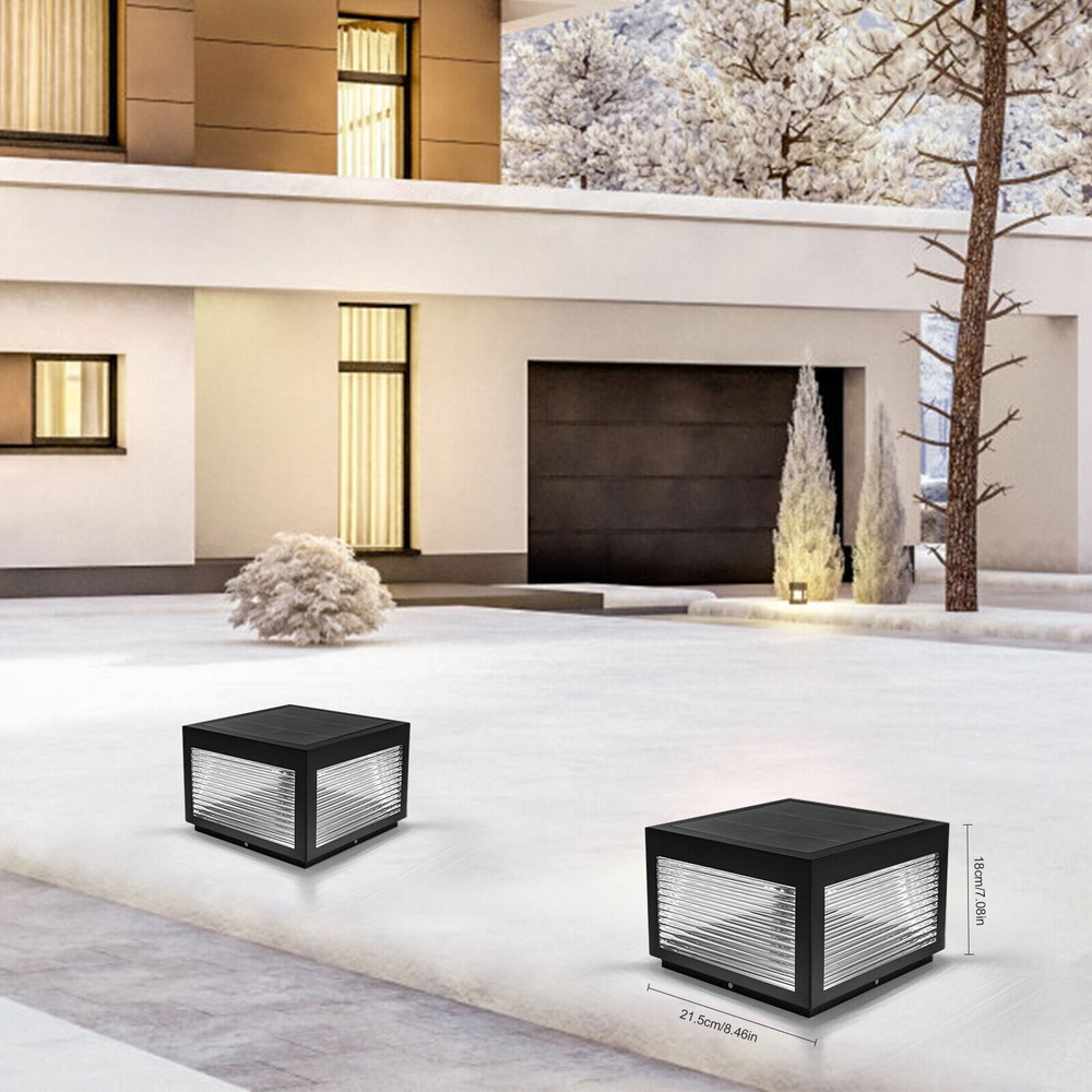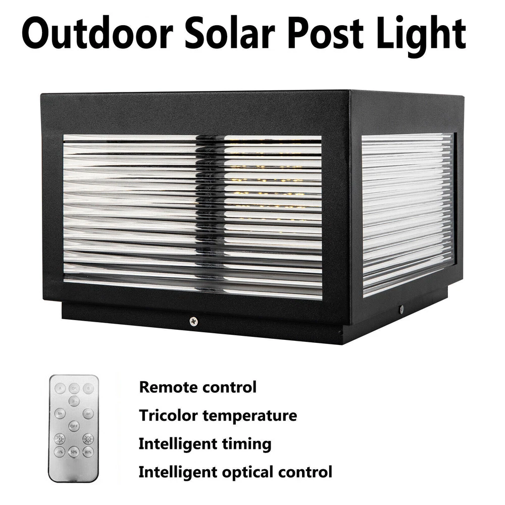 Specification Color: Black, Clear Material: Stainless Steel, Acrylic, Polycrystalline Silicon Surface Treatment: Paint Baking Style: Modern Shape: Rectangular Light Source Type: LED (Included) Power Source: Solar Energy Indoor/Outdoor Usage: Outdoor Control Method: Remote Control Light Fixture Form: Path Color of Light: white light(6000K), warm light(2800K), and neutral light(3500K) Power: 12W Efficiency: E Luminous Flux: 840-960 Lumen Waterproof Rating: IP54 Product Battery Type: 1* 2000mah Lithium Battery(Included) Remote Control Battery Type: 1(Included) Number of Items: 1 Timing Range: 3/5/8h Assembly Required: Yes Mount Type: Free Standing Brightness: 30%/50%/80% Beam Angle: 120° Product Size: 25*25*18cm/9.8*9.8*7.08inch Base Size: 21.5*21.5cm/8.46*8.46inch Post Light Solar Powered Outdoor LED Pillar Lamp Fence Fixture Yard Garden Black Description A good light can add a sense of atmosphere and charm to your garden. Our outdoor solar post light adopts intelligent operation, high-end stainless steel, acrylic materials, and paint baking process to ensure long-term use. Pure solar power supply mode can save your electricity bills. Both as a decorative or illumination, this light is your ideal choice. Key Features Build to Last: High-quality stainless steel, acrylic, and paint baking process make the product weather-resistant, corrosion-resistant, rust-proof, stereoscopic, and solid, so it can better keep practical and beautiful. Multiple Colors:The LED light source with a luminous flux of 840-960 lumen, 120° beam angle, Three colors (white light(6000K), warm light(2800K), and neutral light(3500K)) can be adjusted through a Remote control to create different atmospheres and meet different needs. Safety Guard: IP54 waterproof rating and the ground wire connection mode that can quickly lead the current to the ground can ensure the safety of you and the light even in bad weather. User-friendly Design: This product is powered by pure solar energy because of the polycrystalline silicon panel, without wiring, so it has high conversion rate and saves costs. It can also intelligently sense the light, light up at night, and go out during the day, freeing your hands. Convenient and Intelligent: A 2000 mA lithium battery can ensure long endurance and this item can also realize 360-degree all-round charging. With the remote control, you can also time (3/5/8h), adjust the brightness (30%/50%/80%), switch lights, etc, which is more convenient. Attractive Appearance: The timeless black and smooth lines make the product modern and simple. Wherever it is placed, it is beautiful scenery. Ideal Gift: With a practical function, this item can be regarded as a holiday or housewarming gift for parents, friends, and lovers so that they can enjoy a more convenient and emotional life. Effortless Cleaning: The smooth surface and simple structure make it convenient for you to clean with a towel. Details Sturdy Base: The 8.46-inch base increases the stress area, making the product more stable. Clear Lampshade: Stripe texture acrylic lampshade is high-temperature resistant and non-fragile. It can not only make the light bright but also prevent dust from entering the interior to reduce the cleaning difficulty. Round Corner: Compared with traditional square corners, an arc design can better care for your skin during installation. Application This item is suitable for an area of 32.29-53.82ft², and is an ideal choice for a doorway, lawn, deck, fence, garden, flower bed, patio, porch, homestay, villa, path, hotel, street, courtyard, terrace, enclosure, outdoor desk, or any other flat outdoor place. Specification Color: Black, Clear Material: Stainless Steel, Acrylic, Polycrystalline Silicon Surface Treatment: Paint Baking Style: Modern Shape: Rectangular Light Source Type: LED (Included) Power Source: Solar Energy Indoor/Outdoor Usage: Outdoor Control Method: Remote Control Light Fixture Form: Path Color of Light: white light(6000K), warm light(2800K), and neutral light(3500K) Power: 12W Efficiency: E Luminous Flux: 840-960 Lumen Waterproof Rating: IP54 Product Battery Type: 1* 2000mah Lithium Battery(Included) Remote Control Battery Type: 1(Included) Number of Items: 1 Timing Range: 3/5/8h Assembly Required: Yes Mount Type: Free Standing Brightness: 30%/50%/80% Beam Angle: 120° Product Size: 25*25*18cm/9.8*9.8*7.08inch Base Size: 21.5*21.5cm/8.46*8.46inch Remote Control Use Range: Within 5m/16.4ft Applicable Area: 3-5m²/32.29-53.82ft² Package Included 1* Outdoor Solar Post Light 1* Remote Control 1* English Manual All Accessories for Installation Notes Please use and install it in strict accordance with the instructions, and pay attention to the safety precautions inside. Please install it by someone with an electrical license if necessary, and we recommend two people install it together. Please ensure that the product can be exposed to the sun. Please note that the effective use range of the remote control is within 5m/16.4ft. Please note that the charging time and endurance time of the product will be affected by light. Please note that it won't light up during the day, so we suggest setting it up at night. Just set it once, and it will automatically light up in the dark and go out at dawn. Please allow the slight color difference caused by the shooting light and 1-3cm error due to manual measurement, and make sure you do not mind before ordering. Payment Delivery details Terms of sales About us Contact us Payment We accept ebay payment 。 Fees such as import duties, taxes are not included in the item price or shipping costs. These charges are the buyer's responsibility. Delivery details Shipping: 2-9 working days to: USA Terms of sales We maintain high standards of excellence and strive for hundred percent customer satisfaction. Feedback is very important to us. We hope that you contact us immediately before you give neutral or negative feedback, so that we can address your concerns. It is impossible to addre