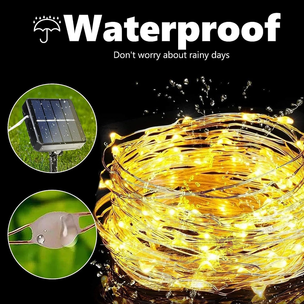 Solar-Powered LED Copper Fairy Lights for Outdoor Garden & Yard Decor