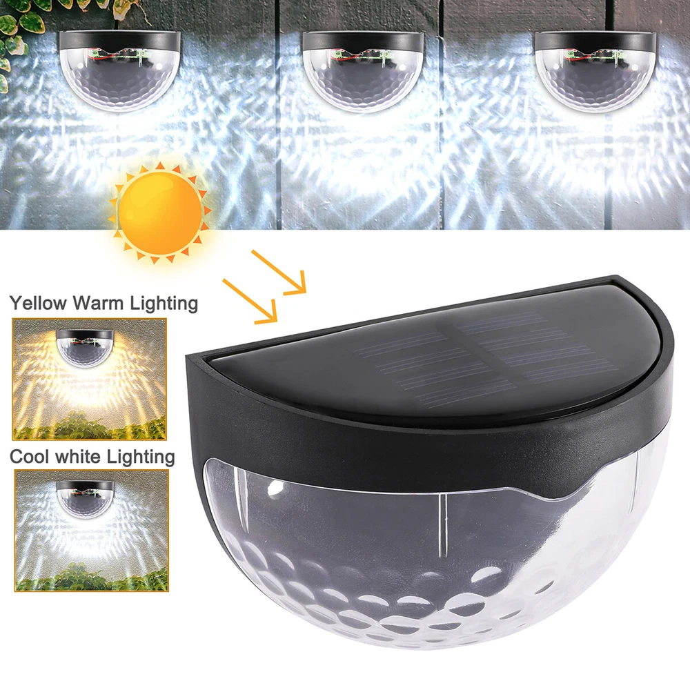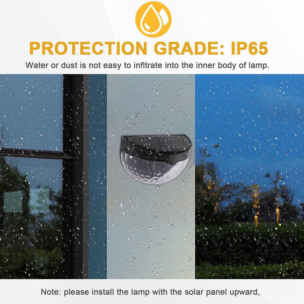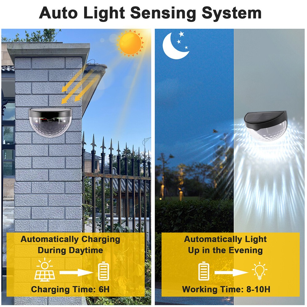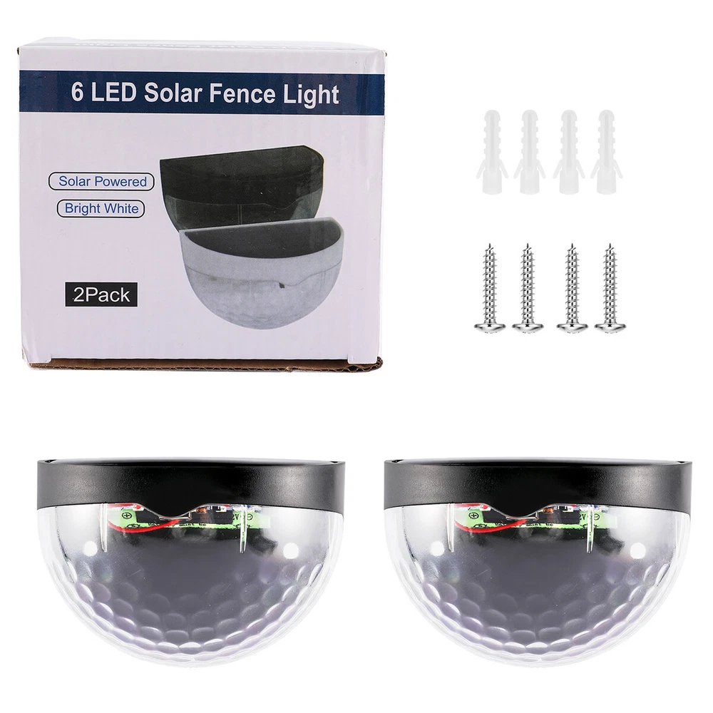 Outdoor Solar LED Deck Garden Stair Step Fence Lights Wall Pathway Fence Lights Specification: Material: ABS Size: 9.2x6.3cm/3.62x2.48in Shell color: black Light color: white/warm light Light source: polycrystalline silicon solar panel,2V 150mA Power dissipation: 6pcs 0.06W 2835 LED Battery: 1*1.2V 600mAh AA Ni-MH charging battery Function: light control Features: 1.Warm light without dazzling: The light of this deck light is enough for you to illuminate your fence, deck, step, patio and more, which is safe for the whole family to go downstairs at night. 2.Automatic work mode: Just set it up in an area where it will receive plenty of sunlight and turn it on. On sunny days only takes hours to fully charge. It turns on automatically at dusk, and off at dawn. 3.Good quality solar panel: Equipped with 2V 150mA polycrystalline silicon solar panel. No cost lighting, eco-friendly, powered by the sun. Just set it up in an area where it will receive plenty of sunlight. 4.Wide application: The solar fence light is perfect for illuminating stairs, paths, gardens, decks, patio, also use lighting front door, back yard, driveway, garage, outdoor wall and more. 5.Easy to install: The solar deck light can be installed in anywhere that can be fixed with screws. Comes with screws for your convenience. 6.Material: Made from good quality ABS material, anti aging and durable. 7.Good decoration: The light is ideal for decorating outdoor staircases. 8.Easy to use: No wiring needed, solar powered light, eco-friendly, energy saving, easy to install. Package Includes: 2/4/6/8/10 x solar fence light On Feb 21, 2025 at 00:28:01 PST, seller added the following information: