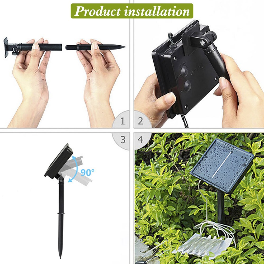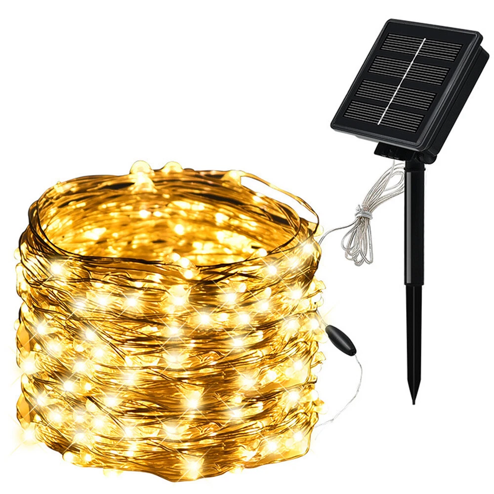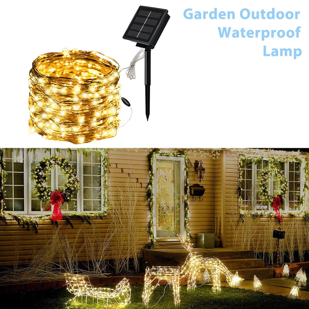 Solar String Lights Outdoor Solar Fairy Light Garden Decoration Light Waterproof Description: *1. Light Colors: #Rainbow,#Warm-White *2. Charging Time: 4-6 H *3. Waterproof: IP65 *4. Solar Panel: 2V/0.3W *5. Battery Capacity: 600mAh *6. Number of LEDs: 200pcs *7. Working Time: 10-18 H *8. Copper Wire Diameter: 0.38 mm *9. Total Length: 11.5 m Features: *1. Built-in 600mAh high-capacity battery, powered by solar energy via a large size solar panel with a ground stake, the LED string light is easy to operate and install. *2. 37.7ft long string light is flexible, you can twist, bend it to fit any surfaces indoor & outdoor to decoration home. *3. IP65 waterproof rating protects the lights well against rain and dust, perfect for your yard, garden, lawn, porch, door, patio, wedding, party, etc. *4. Switchable 8 lighting modes can be easily changed by the button, and there is another button on the solar panel for power on/off. *5. Totally 100pcs of LEDs, low power consumption, high performance, high brightness and long service life. Package Includes: 1 x String Lights
