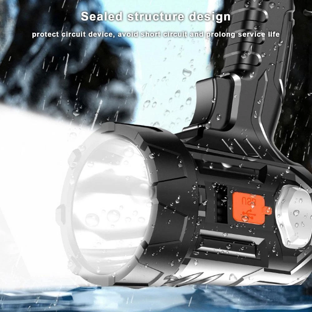 Descriptions: 【Super Bright Flashlight】 【Main light 3 colors】 【Rechargeable spotlight】 【Waterproof & Durable】 Specification: Product name: handheld flashlight Luminous flux: 300000LM Waterproof grade: IPX4 Material: ABS+PC Colour: Black Product Size: Length: About 30cm/11.81in Battery capacity: 1800MAH Product weight: About 300g Package List: 1PCSX Flashlight 1PCSX USB Cable Note: Due to the different monitor and light effects, the actual color of the item might be slightly different from the color which is showed in the pictures. Please forgive a slight measuring deviation due to manual measurement. Solar/USB Rechargeable 30000000LM Bright LED Spotlight Flashlight Searchlight D escriptions: 【 Super Bright Flashlight】 Embedded upgraded LED chip with a maximum output of 20,000 lumens, this spotlight flashlight can reach a maximum illumination distance of 100FT (300 meters), perfect for hiking, camping, sailing or hunting 【 Main light 3 colors】 With red, yellow and blue lights,this spot light can meet your different lighting needs, suitable for indoor and outdoor use.Red and blue warning lights on the side to ensure safety 【 Rechargeable spotlight】 Two charging methods, solar charging and USB charging, super long battery life.Built-in battery USB input & output and solar energy, you can charge it by USB cable (4-5 hours) or solar energy (10-20 hours). Our flashlight can also be a power bank for phone, camera, digital products in emergency. More convenience for you 【 Waterproof & Durable】 This handheld super bright flashlight is made of high-quality materials and is extremely durable. The IPX6 waterproof rating allows it to be used in rainy or snowy days, bringing great convenience to your outdoor Specification: Product name: handheld flashlight Luminous flux: 300000LM Waterproof grade: IPX4 Material: ABS+PC Colour: Black Product Size: Length: About 30cm/11.81in Battery capacity: 1800MAH Product weight: About 300g Package List: 1PCSX Flashlight 1PCSX USB Cable Note: Due to the different monitor and light effects, the actual color of the item might be slightly different from the color which is showed in the pictures. Please forgive a slight measuring deviation due to manual measurement. Payment Shipping Return Contact us About us Payment 1.Paypal, Credit Card, G Pay etc, many payment way is accepted. 2.Please be sure your shipping address is correct before make a payment. Shipping 1.We will ship out the item within 1-3 business days after comfirming the payment, appreciate your patience. 2.If the items are broken on the way( we will check the orders clearly before we sent them ),please contact us in 3 days you received it. We will send you a new one or refund your payment. Return 1.We stand behind every buyer.Items can be returned for exchange or refund within 30 days. 2.Please contact us when you have any confusion of our item, we will solve the trouble for you as soon as possible. Contact us 1.This is professional Seller.We will reply your message within 24 hours. 2.Please contact us whenever you have any question about the item. We will deal with it as soon as possible. 3. If you are unhappy with the item or our service,please Contact Us before leave feedback,just give me a chance,thank you! About us 1. Unless specified otherwise, all our products are IN STOCK and are shipped from Local warehouse - Not Overseas! 2. We provide a 30 day Satisfaction Guarantee or your money back (provided items are in the same new and resaleable condition.) 3. We have a PayPal Verified Business Account, please buy with Confidence! 4. Every item will be tesrted before send.We know our products well and if we don't have the answers we will do our best to find them for you! 5. Our friendly team look forward to serving you! Your satisfaction is our No.1 Priority We will do our best to satisfacy you.