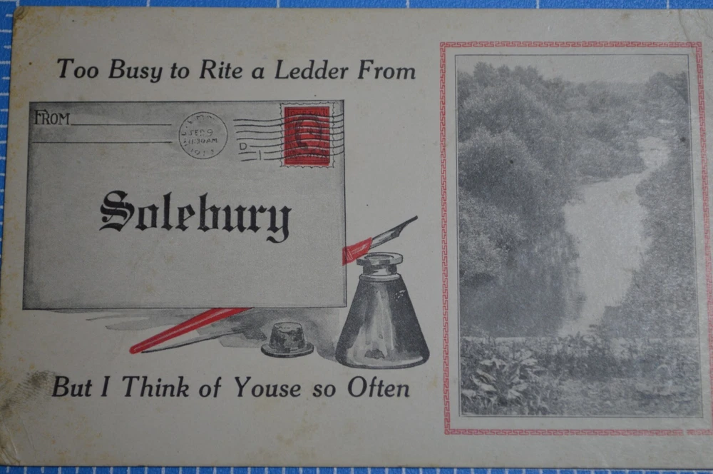 Description: Solebury Bucks County PA Letter Writing Pen Inkwell Scenic View1913 Posted Postcard. Solebury postcard posted in 1913 in Lumberville, PA. Seller notes age and use related wear, along with discoloration. Please see photos for condition and more information. Questions and offers welcome. Please review entire listing (including condition, title, pictures, description, and terms) before committing to purchase this listing. Before agreeing to purchase this listing, make your own determination on condition of the item(s) being offered in this listing. Pictures are part of the description and are provided to help illustrate condition. Since descriptions and opinions of condition can vary, seller provides prospective buyers with the ability to request more information and additional pictures before the close of this listing. When in doubt, please contact Taggart Neveling Books Ephemera, LLC "the seller" through eBay before you bid or agree to purchase this listing. This helps ensure a smooth transaction, one where Taggart Neveling Books Ephemera, LLC gets a sale and the buyer gets the item(s) they want to purchase. Condition & Disclosure of All Faults: All items appearing in this listing are pre-owned and are sold "AS-IS" and "WITH ALL FAULTS." No warranties, express or implied, are made in connection with this listing. Additionally, all other warranties not specifically listed above, are also disclaimed. Since the seller, Taggart Neveling Books Ephemera, LLC, does not provide any warranties with this listing, to the fullest extent allowed by law no sale shall be deemed invalid. A written description and uploaded pictures are offered to help provide a general idea of condition. Pictures are part of the description, but may not show every defect or flaw of an item or collection of items. The written description offered in this listing may not state every single defect or flaw in condition associated with item or items offered in this listing. However, Taggart Neveling Books Ephemera, LLC "the seller" offers potential buyers the ability to submit questions before agreeing to purchase this listing. Buyer agrees that a failure to exercise this option is not sufficient cause to initiate a return. Since Taggart Neveling Books Ephemera, LLC offers potential buyers the ability to submit questions before agreeing to purchase this listing, by bidding or agreeing to purchase this listing, buyer agrees seller has provided sufficient legal disclosure of all defects and faults, even if such defects and faults are not specifically identified in the written description or shown in the uploaded images. All statements and descriptions about age, authenticity, condition, fitness for a particular purpose, or origin of items offered in this listing, as well as those made in response to questions about this listing, reflect the opinion of the seller and are NOT offered as statements of fact. By bidding or agreeing to purchase this listing, the buyer agrees that to the fullest extent allowed by applicable law, Taggart Neveling Books Ephemera, LLC "the seller" will not be liable for any defect, error, or omission in this listing. By bidding or agreeing to purchase this listing buyer agrees to have performed all due diligence beforehand. By bidding or agreeing to purchase this listing buyer agrees all items offered in this listing may require cleaning, conservation, or repair. By bidding or agreeing to purchase this listing, buyer agrees ALL SALES ARE FINAL. NO REFUNDS. NO PARTIAL REFUNDS. NO RETURNS. NO EXCHANGES. Digital Photos and on Screen Viewing: Cameras and computers sometimes display colors differently. Colors, when viewed on a computer screen, can be lighter or darker than the actual item(s) that is being photographed. Please keep this in mind when you place your bid. Please also note: No display props or materials (tape measures, stands, or other items that may be used to help display a listing) are included. Taggart Neveling Books Ephemera, LLC welcomes questions, but asks all potential buyers to submit questions at least one day before the close of this listing. This helps ensure there will be enough time to respond to questions before the close of the listing. Payment Policy: Payment is due within two days of the close of a listing. If a listing remains unpaid for three or more days the issue will be reported to eBay. Failure to pay for an item in a timely fashion may result in a buyer being blocked from both current and future listings offered under this user ID. Sales Tax, Use Tax, Other Taxes: Since tax laws vary by state, you may be responsible for remitting sales or use tax to the appropriate state agency. The bidder, by bidding, agrees that if any sales or use tax (or any other tax) is due on the item(s) purchased, it is to be paid and remitted to the appropriate agency by the buyer and not the seller. Please note that eBay has largely automated this process. However, if there is any error in eBay's collection or the calculation of tax due, the buyer agrees, to the fullest extent allowed by law, to pay the correct amount to the appropriate agency and to not hold the seller responsible for covering any additional amount of tax due. Shipping Policy: Shipping Cost for this listing (Within Continental US): Item will ship for $4.95, with tracking, to continental US. Please note: No in-person pickups or deliveries are offered with this listing. Delivery for this listing will only be made via USPS mail. In listings without free shipping offered, total shipping cost includes all aspects of shipping, such as packing materials, time to pack the listing(s), time and expense incurred to get the listing(s) to the post office, and lastly postage. Postage is just one aspect of shipping cost. Please keep this in mind if you happen to see an instance where the shipping cost charged was higher than the postage cost. Time to Ship: All orders will ship within five business days. This means your order will sh