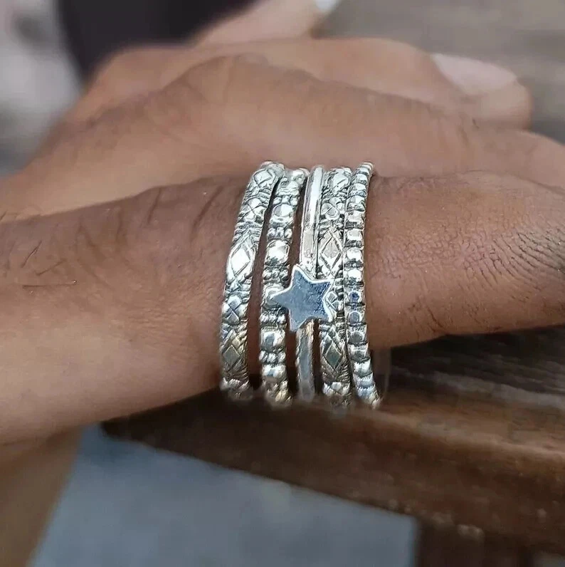 Solid 925 Sterling Silver Star Five Band Ring Handmade Anniversary Ring All Size