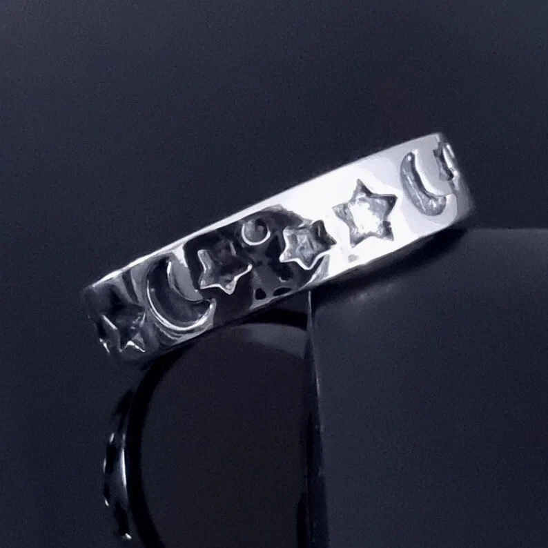 Solid 925 Sterling Silver Star & Moon Unisex Thin Celestial Band Ring Gift For Elevate your style with this stunning Star and Moon Sterling Silver Ring. Perfectly crafted from high-quality 925 sterling silver , this celestial-themed ring is an elegant addition to any jewelry collection. Featuring intricate star and moon designs, it’s ideal for those who adore astrology, celestial motifs, or simply enjoy unique, standout pieces. Key Features: Material : High-quality 925 sterling silver , known for its durability and lasting shine. Design : Elegant star and moon motifs, symbolizing the celestial wonders of the night sky. Style : A thin, yet wide band , offering a comfortable fit and bold look. It can be worn as a thumb ring or on any other finger for a versatile style. Unisex : Designed to fit both men and women, making it a perfect gift for anyone who loves celestial-themed jewelry. Size : Available in R18 . (Custom sizing may be available; check with the seller for details.) Versatile : Ideal for everyday wear, this ring is lightweight and durable, suitable for casual or formal outfits. Perfect Gift : A thoughtful and unique gift for birthdays, holidays, or any occasion for lovers of astrology, the moon, stars, or celestial-inspired jewelry. Why Choose This Ring? Timeless Design : The beautiful star and moon design gives a sense of wonder and magic, making it a perfect accessory to express your love for the cosmos. Quality Craftsmanship : Made with 925 sterling silver , a high-quality metal that resists tarnishing and maintains its shine. Comfortable Fit : The thin band ensures a lightweight, comfortable feel, while the wide design adds a bold statement. Ideal for Daily Wear : Whether you're dressing up or down, this celestial ring is perfect for any occasion.