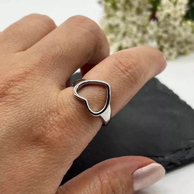 Solid 925 Sterling Silver Unique Heart Shape Ring Handmade Wedding Ring All Size