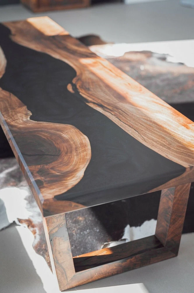 Solid Black Counter Top Epoxy, Epoxy Wooden Furniture For Dining Table Decors