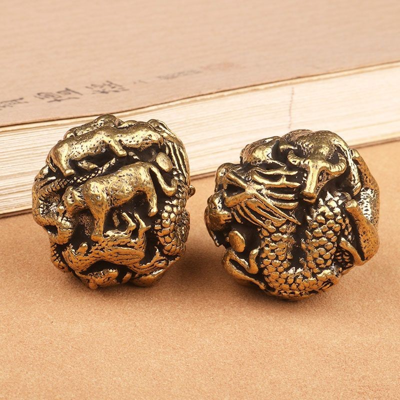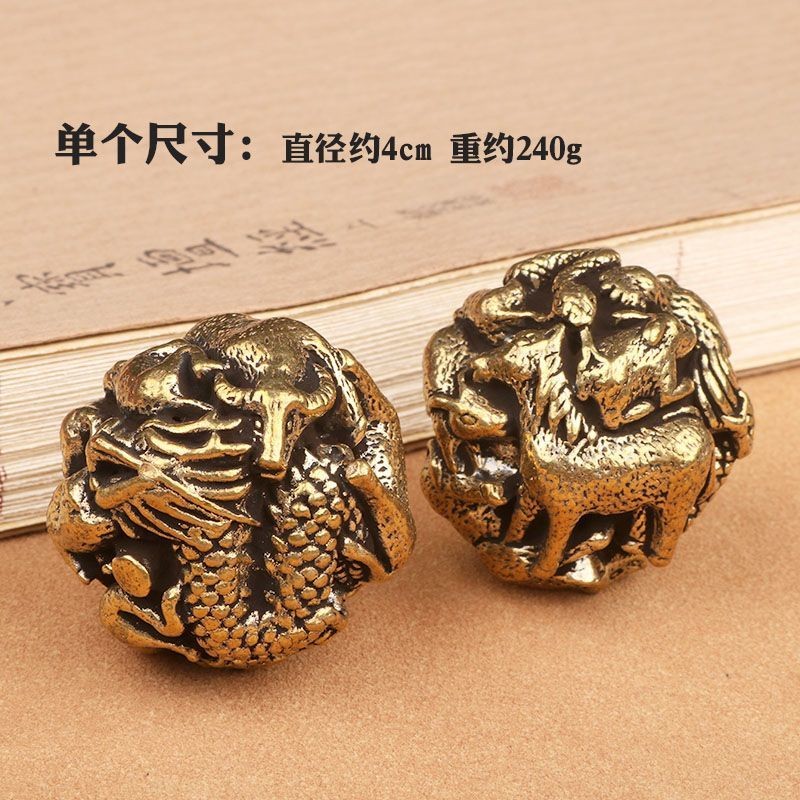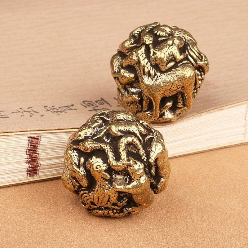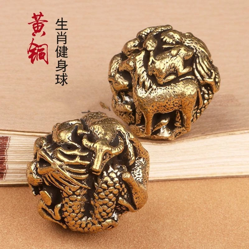 Solid Brass Zodiac Hand Exercise Balls Metal Walnut Style Massage Pair