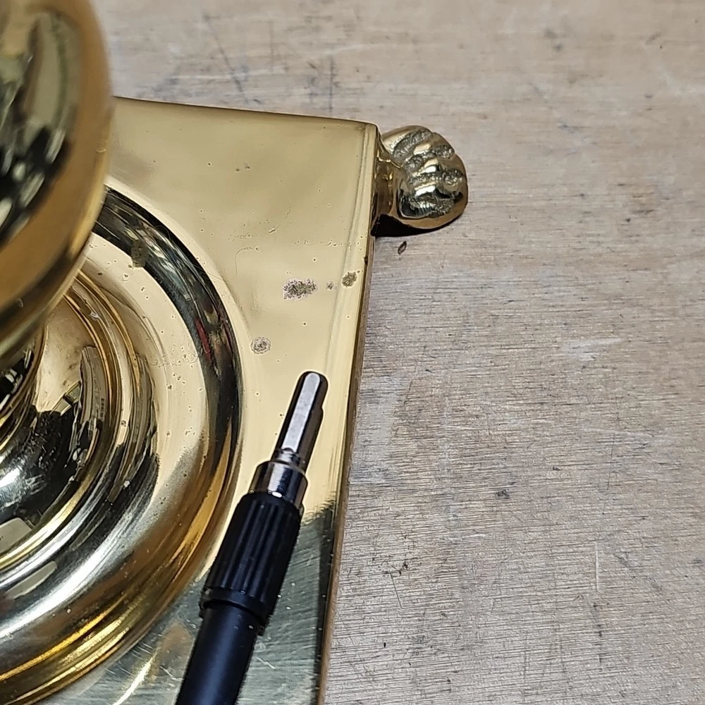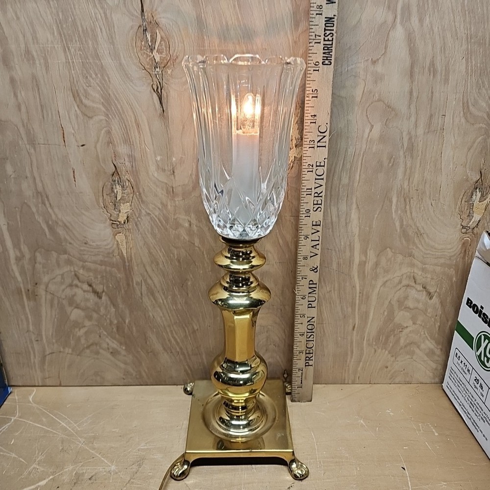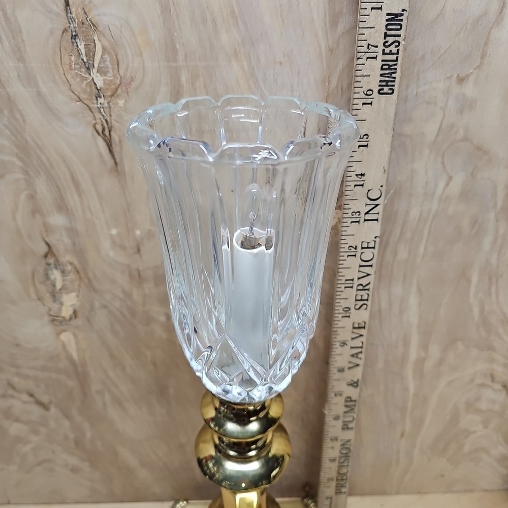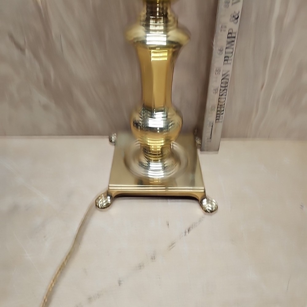 The Solid Brass and Crystal Vintage Footed Table Lamp is a medium-sized, corded electric lamp with a unique design that exudes vintage charm. Crafted from brass with a gold color, this original piece features intricate crystal details and a footed base, adding a touch of elegance to any room. Perfect for collectors or those looking to add a touch of nostalgia to their decor, this vintage lamp is a timeless and stylish addition to any space.