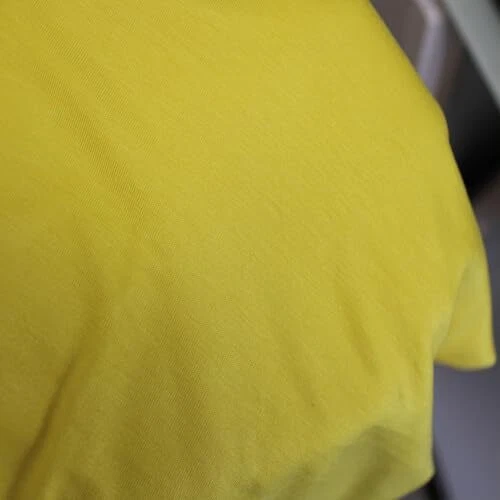 It is breathable and can actually be more moisture-absorbent. It has a very smooth, flowing fit and comfy feel. The Jersey Knit fabric is perfect for T-Shirts, Causal Wears, Stylish Jumpsuits, Dresses, Pajamas, head accessories and all kind of DIY Projects and so much MORE !!!! Width: 58-60" Content: 95% Rayon, 5% Spandex The Jersey Knit fabric is perfect for T-Shirts, Causal Wears, Stylish Jumpsuits, Dresses, Pajamas, head accessories and all kind of DIY Projects and so much MORE Apparel made from this fabric is soft and stretchy, yet durable Product color might slightly vary due to photographic lighting sources or your monitor settings