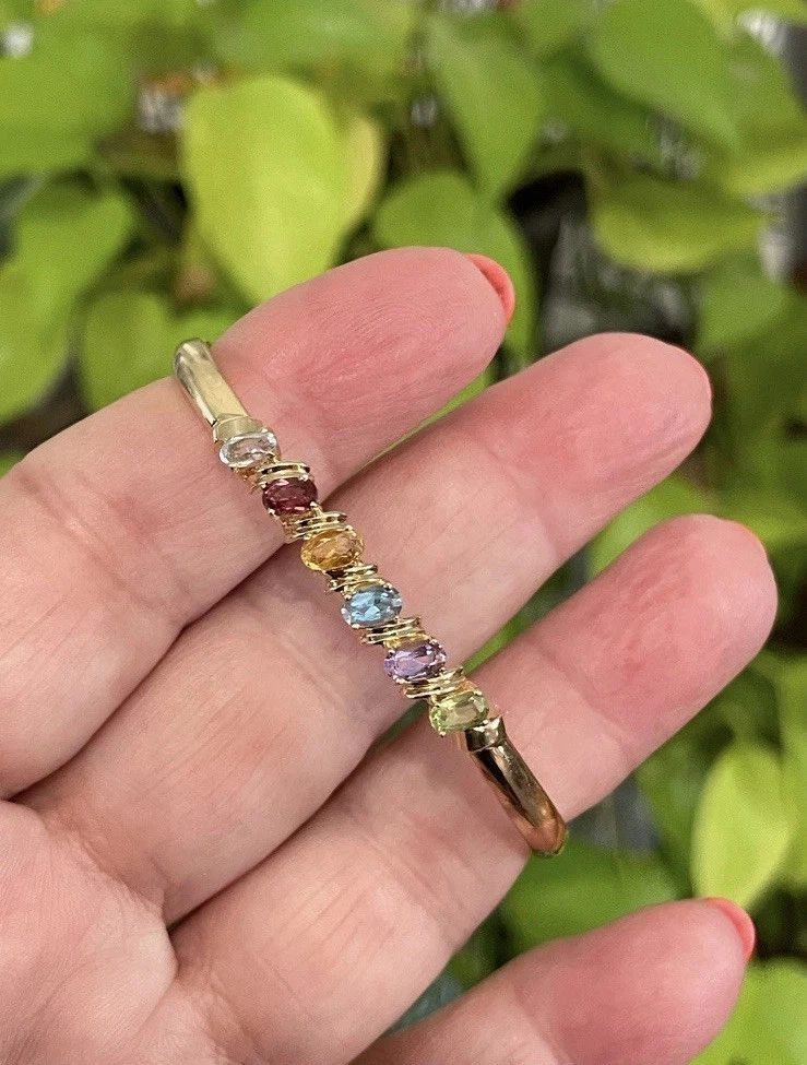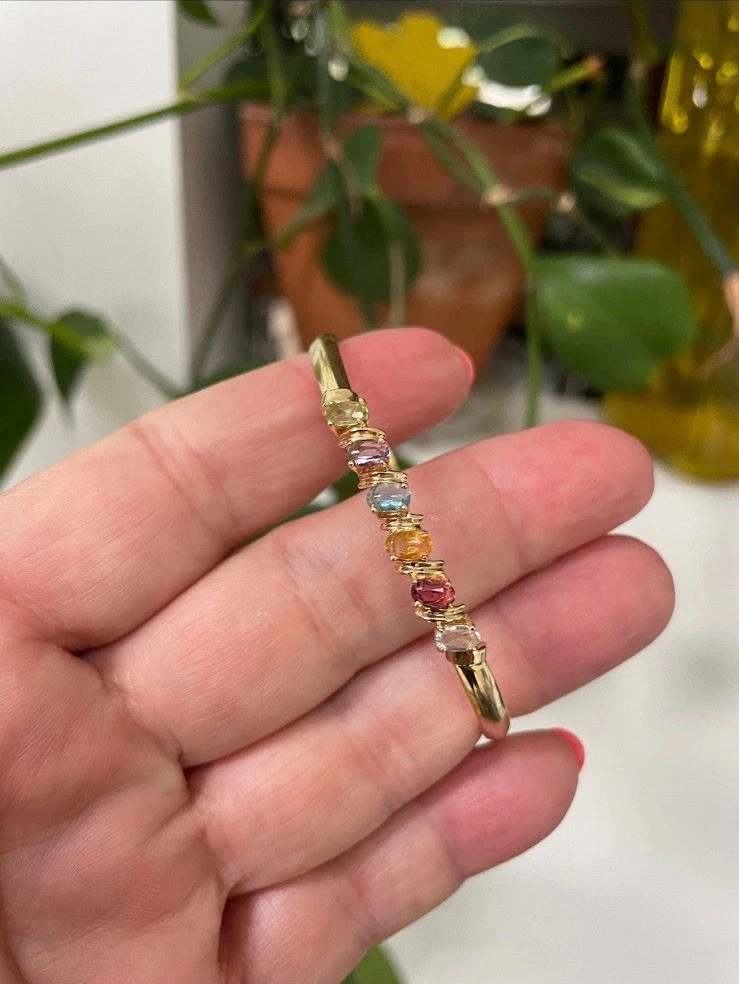 Cut Grade:ExcellentMetal:Yellow GoldStyle:BangleCountry/Region of Manufacture:United StatesMain Stone Creation:NaturalAntique:NoCountry of Origin:United StatesType:BraceletMaterial:GemstoneColor:GoldMain Stone Shape:OvalMain Stone Color:MulticolorBase Metal:GoldFeatures:Nickel-FreeShape:RoundMain Stone:topazSetting Style:ProngTheme:NatureBrand:UnbrandedMetal Purity:14kSecondary Stone:Citrine, Sapphire