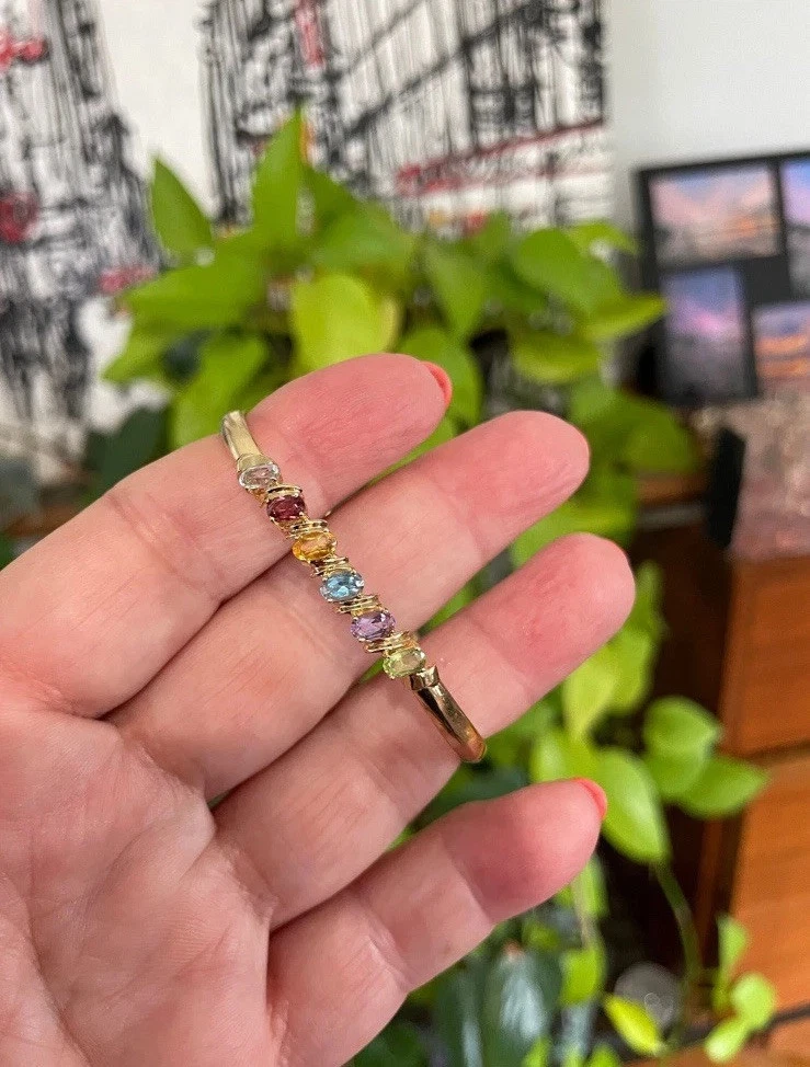 HomeSolid Gold Bangle With Colorful Natural Gemstones