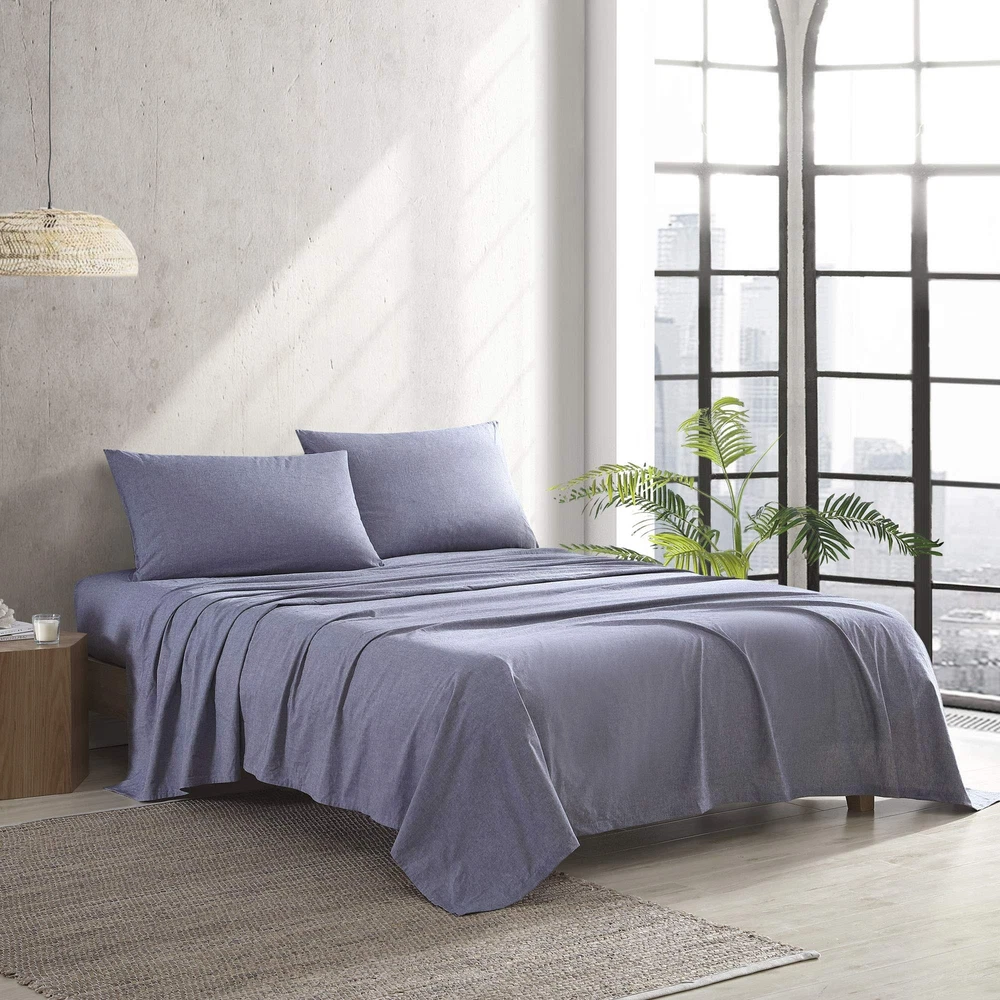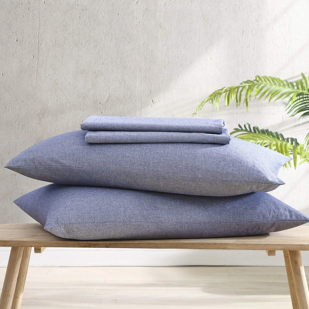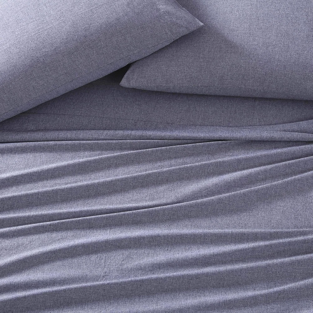 Solid Heather Recycled Fiber Percale Sheet Set, Queen, Denim