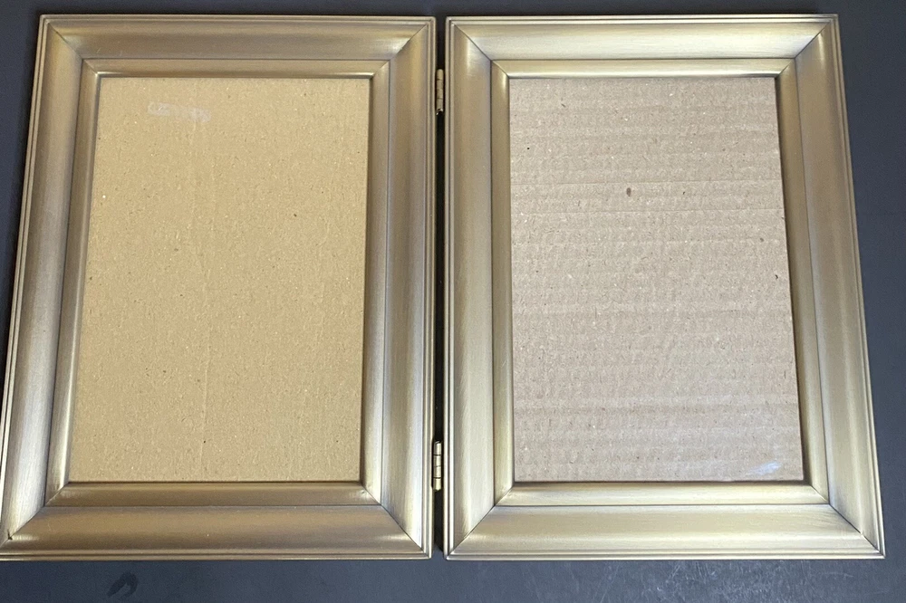 This listing is for a beautiful vintage metal picture frame that holds 2, 7x5inch photos. This frame has a lovely gold color to it and is in great vintage condition. I try to be thorough in my descriptions and photos, so any questions, please reach out.