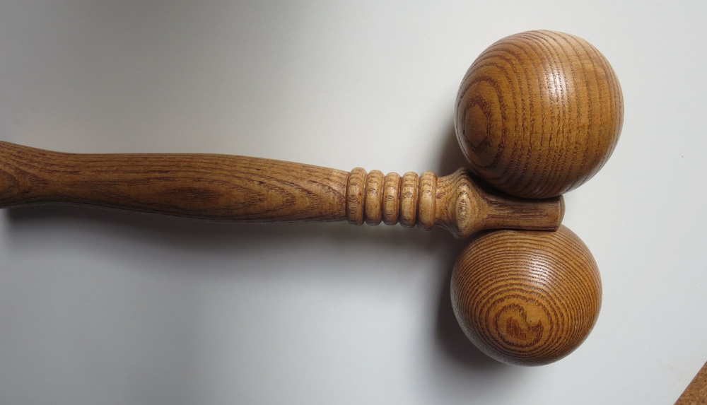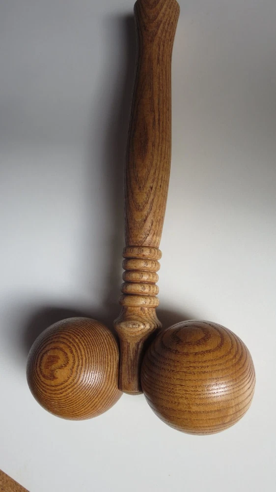 Solid Oak Roller Body Massager with 8 inch handle. 10 inches overall. Very little used. Stuck away in a drawer for 35 years.