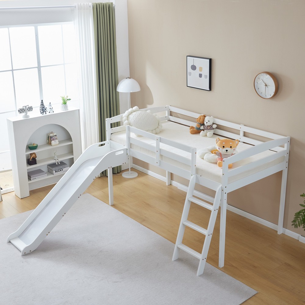 listing template VISIT OUR STORE SIGH UP FOR EMAIL Solid Pine Wood Floor Bunk Beds Frame Kids Bunk Bed for Bedroom Teens Dormitory Introductions Transform your child's bedroom into a fun and functional space with our Twin Size Low Loft Bed with Slide and Ladder. Designed for both play and rest, this classic solid wood bed features an exciting slide and secure ladder, making bedtime an adventure. With a generous 660 lbs weight capacity and 14" safety guardrail, parents can trust in its durability and safety. The low-profile design fits comfortably under standard ceilings, while the stylish grey finish complements any room decor. Features - Twin-size low loft bed with an attached slide for endless fun - Solid wood construction ensures long-lasting durability - Angled ladder with anti-slip steps for safe climbing - 14" safety guardrail provides extra security on the top bunk - Impressive 660 lbs weight capacity for superior strength - Space-saving design ideal for small bedrooms - Neutral grey finish matches various decor styles - Smooth, rounded edges for added child safety Specifications - Material: Solid wood - Dimensions: 77.56"L x 41.73"W x 47.44"H - Bed Size: Twin / Twin Over Twin - Weight Capacity: 660 lbs - Safety Features: 14" guardrail, anti-slip ladder steps - Color: Grey White - Assembly: Required Package Includes - 1 x Twin low loft bed frame / 1 x Twin Over Twin bed frame Shipping Policy 1. Ship worldwide from New Jersey by reliable shipping companies -- USPS, UPS, FEDEX, DHL, etc., and only to VERIFIED PAYPAL ADDRESS. Transport Delivery ETA. Package handling only takes 1 business day at our warehouse, so please make sure entering correct payment and shipping information before checking out. Once your payment is completed, we are not going to accept any more changes to your order. 2. International Buyers – Please Note: a. Import duties, taxes and charges are not included in the item price or shipping charges. These charges are the buyer's responsibility. b. Please check with your country's customs office to determine what these additional costs will be prior to bidding/buying. 3. Please check your shipping address carefully before checkout, it can't be changed if order completed. 4. Orders placed on weekend will be shipped within 2 days.Notification of shipment with tracking number will be sent to buyers. 5. Standard shipping: 2-7 business days Expedited Shipping: 2-3 business days One-day Shipping: 1 business day International shipping: Varies 6.Ship within 1 business day once payment completed. Notification of shipment with tracking No. will be sent to buyer. 7.We offer discounts for combine shipping. Please contact us first if you need combine shipping, and an invoice with discount will be sent to you. 8.Please allow 5 business days for delivery to US destinations on any eBay orders and 14 business days for delivery to any International destinations. We highly recommend our buyer choose priority/expess mail for international delivery which is much more stable. Return Policies 1. Refunds given only if item DOA and cannot be replaced via PAYPAL . If so, Please contact us with 5 days since you receive the item and and return to us within 30 days from the delivery date for exchange or refund. 2. If you need return, please contact our customer service representative, let us know the detailed problem and send us some pictures for confirmation. Payment Payment should be sent within 8(EIGHT) days of auction closing. Feedback If you are dissatisfied for any reason, please do not be quick to leave negative/neutral feedback. We work hard to make sure EVERY CUSTOMER 100% SATISFIED and resolve any problem for you. Work Time Work Time: Monday to Saturday About Us | Newsletter| Feedback| Contact Us Copyright © 2022 LikeDeal. All rights reserved. 无标题文档 Solid Pine Wood Floor Bunk Beds Frame Kids Bunk Bed for Bedroom Teens Dormitory Introductions Transform your child's bedroom into a fun and functional space with our Twin Size Low Loft Bed with Slide and Ladder. Designed for both play and rest, this classic solid wood bed features an exciting slide and secure ladder, making bedtime an adventure. With a generous 660 lbs weight capacity and 14" safety guardrail, parents can trust in its durability and safety. The low-profile design fits comfortably under standard ceilings, while the stylish grey finish complements any room decor. Features - Twin-size low loft bed with an attached slide for endless fun - Solid wood construction ensures long-lasting durability - Angled ladder with anti-slip steps for safe climbing - 14" safety guardrail provides extra security on the top bunk - Impressive 660 lbs weight capacity for superior strength - Space-saving design ideal for small bedrooms - Neutral grey finish matches various decor styles - Smooth, rounded edges for added child safety Specifications - Material: Solid wood - Dimensions: 77.56"L x 41.73"W x 47.44"H - Bed Size: Twin / Twin Over Twin - Weight Capacity: 660 lbs - Safety Features: 14" guardrail, anti-slip ladder steps - Color: Grey White - Assembly: Required Package Includes - 1 x Twin low loft bed frame / 1 x Twin Over Twin bed frame Shipping + 1. Ship worldwide from New Jersey by reliable shipping companies -- USPS, UPS, FEDEX, DHL, etc., and only to VERIFIED PAYPAL ADDRESS. Transport Delivery ETA. Package handling only takes 1 business day at our warehouse, so please make sure entering correct payment and shipping information before checking out. Once your payment is completed, we are not going to accept any more changes to your order. 2. International Buyers – Please Note: a. Import duties, taxes and charges are not included in the item price or shipping charges. These charges are the buyer's responsibility. b. Please check with your country's customs office to determine what these additional costs will be prior to bidding/buying. 3. Please check your shipping address carefully before checkout, it can't be changed if order c