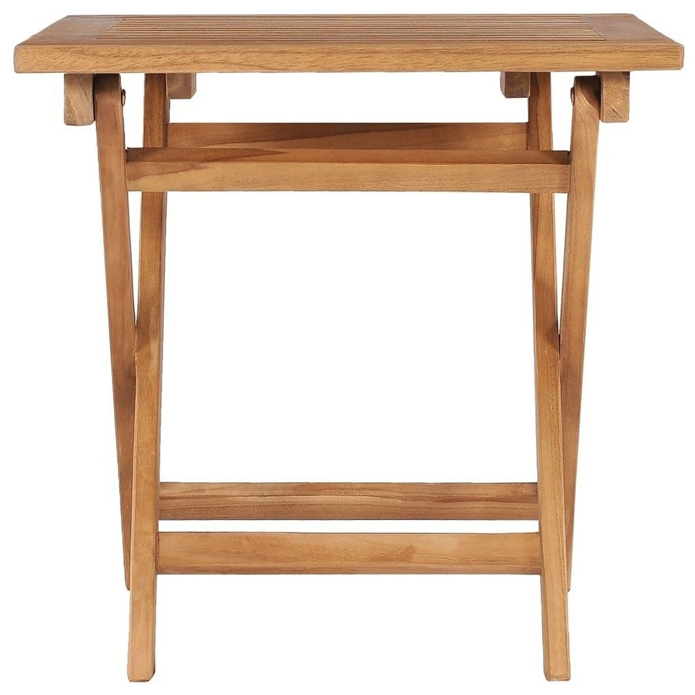 Size: Small This folding garden table is expertly crafted from solid teak wood, offering a stylish and functional solution for outdoor dining or gatherings. The smooth surface and rich brown finish enhance any balcony, patio, or garden, creating a warm and inviting atmosphere perfect for family reunions or a casual coffee with friends. Compact Design: This table folds, making it a perfect fit for small patios or balconies. It collapses easily for tidy storage, keeping your outdoor area neat. Durable Material: Made from solid teak wood, this garden table is both gorgeous and practical. Teak is known for its durability, ensuring this table lasts while looking lovely. Weather Resistant: Built for outdoor use, this table resists moisture and temperature changes, keeping it nice despite the weather. Sturdy Construction: The square legs add stability, so you can enjoy meals without wobbling. Sleek Aesthetic: With its modern design, the table's smooth finish integrates well into any outdoor decor, boosting the overall vibe of your space. Color: Brown Shape: Square Material: Solid Teak wood Indoor/Outdoor: Outdoor Only Cover Included: No Room: Garden and terrace Dimensions: 17.7 x 17.7 x 17.7 in (W x L x H) Leg Height: 17.7 in Weight: 7.14 lbs Delivery Contains: Folding table Assembly Required: Yes Recommended Number of People for Assembly: 1