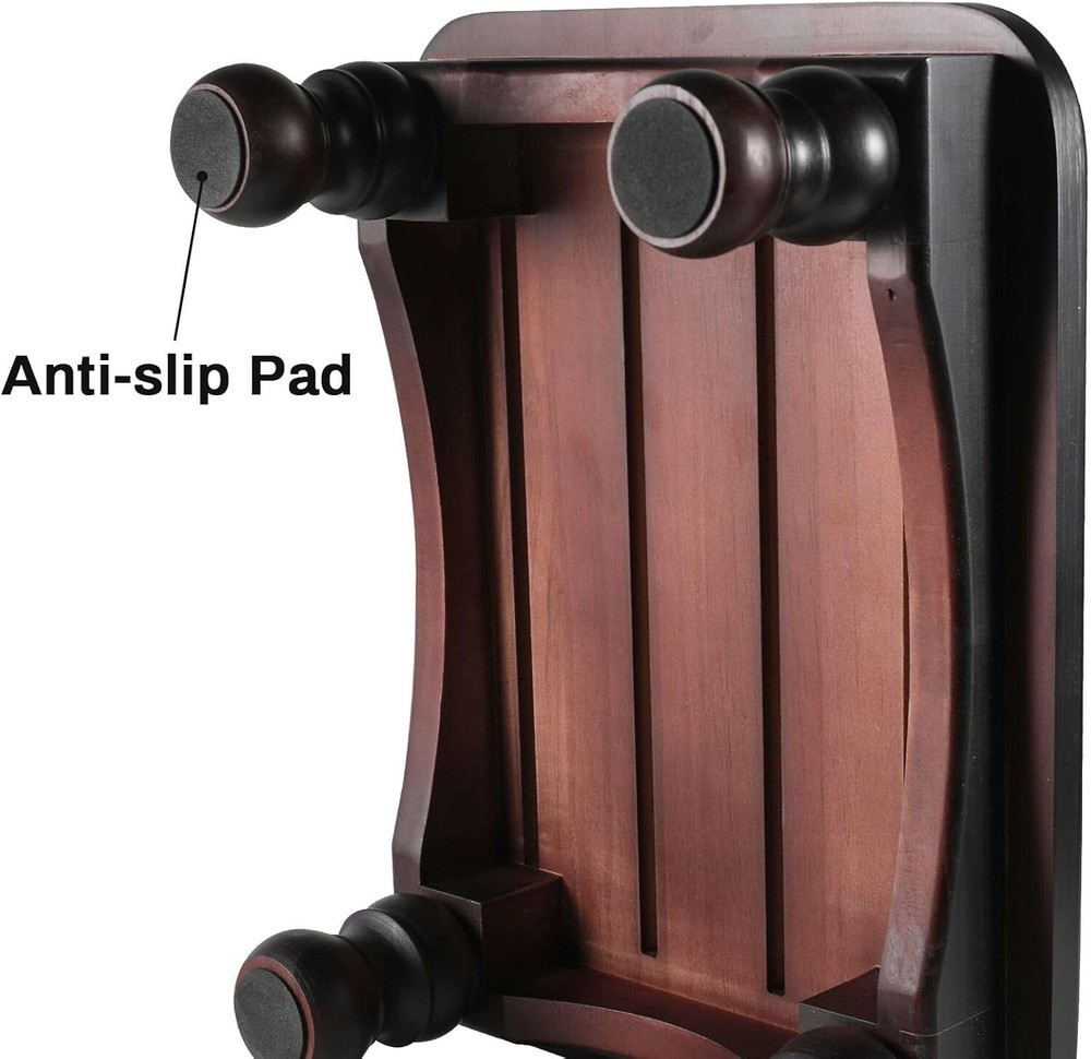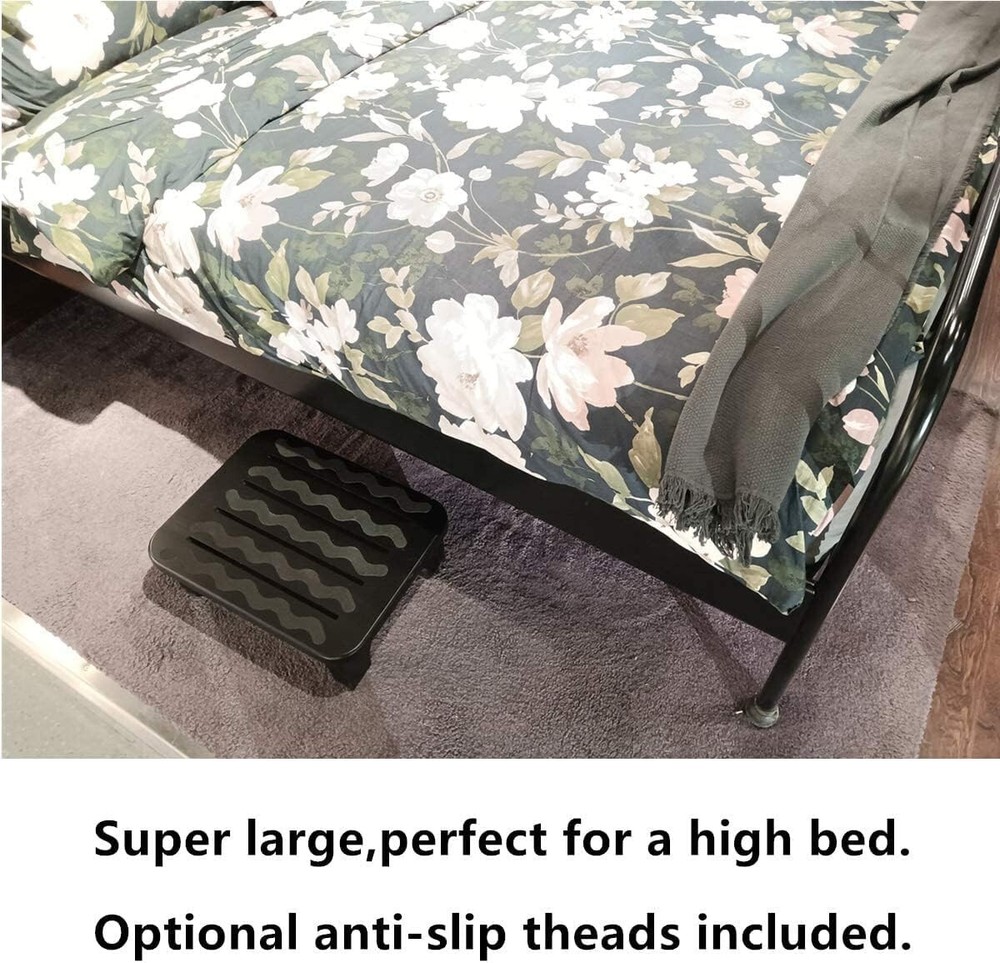 Solid Wood Bed Step Stool Super Large/Bedside Steps for High Beds/Solid Wood Super Sturdy Hold Up to 500 LBS (Dark Brown) Crafted from natural wood, which is sturdy and beautiful, relieves your fatigue and benefit to your health. Our step stool is designed to help you climb into bed with ease.You can also use it in kitchen, livingroom,bathroom and more. Smooth surface! - Our Stool is fully sanded and smooth to the touch. All corners and edges have been fully rounded and sanded .All wood screw construction.There are no exterior screw holes, no staples, nails or glue. With 5 pack black non-slip treads which you can apply or not.Our pre-cut black treads reduce slippery areas and increase safety by covering a larger stool surface. It is easy to install. Clean the surface first! Then peel and stick. Simply take out of the box and place in your living room or kitchen,bathroom.Super large and stable,16.6" Wide x 12.6" Deep x 6" High.Vented design ensures a natural flow Product Description Do you have a high bed or are you recovering from an injury? Our step stool is designed to help you climb into bed with ease. No Sharp Edges Before we assemble our stools, we round over all edges and corners. The rounded indents make it safe and easy for children to carry. There are no sharp edges to worry about. Smooth Surface Our stool is fully sanded and smooth to the touch. All Wood Screw Construction All wood screws are installed from the inside. There are no exterior screw holes. This item contains no staples, nails or glue. Specifications Net Weight: 5.5 lbs Max. Load: 500 lbs Number of Ladder Step:1 Material: Australian Beechwood Natural wood Platform size: 16.6" x 12.6" Size: 16.6" x 12.6" x 6"(L&W&H) Important information Safety Information Ensure the stool is stable before use, and do not exceed the maximum weight capacity of 500 lbs. Use non-slip treads for increased safety. Directions 1. Take out of the box and place in your desired location. 2. The stool is super large and stable with a vented design for natural flow, and can support up to 500 lbs. 3. Ensure the smooth and fully sanded surface with rounded and sanded corners and edges is safe to use. 4. Apply the 5 pack black non-slip treads for increased safety if desired.