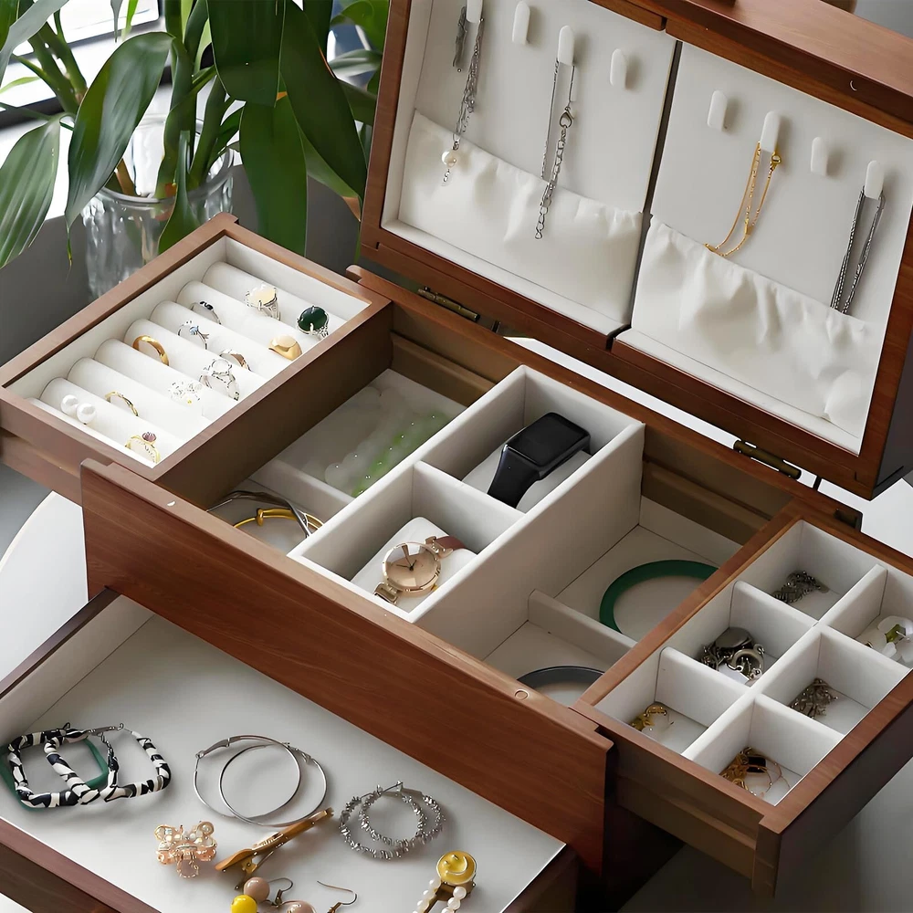 Solid Wood Jewelry Box for Rings Necklaces Watches Earrings Storage