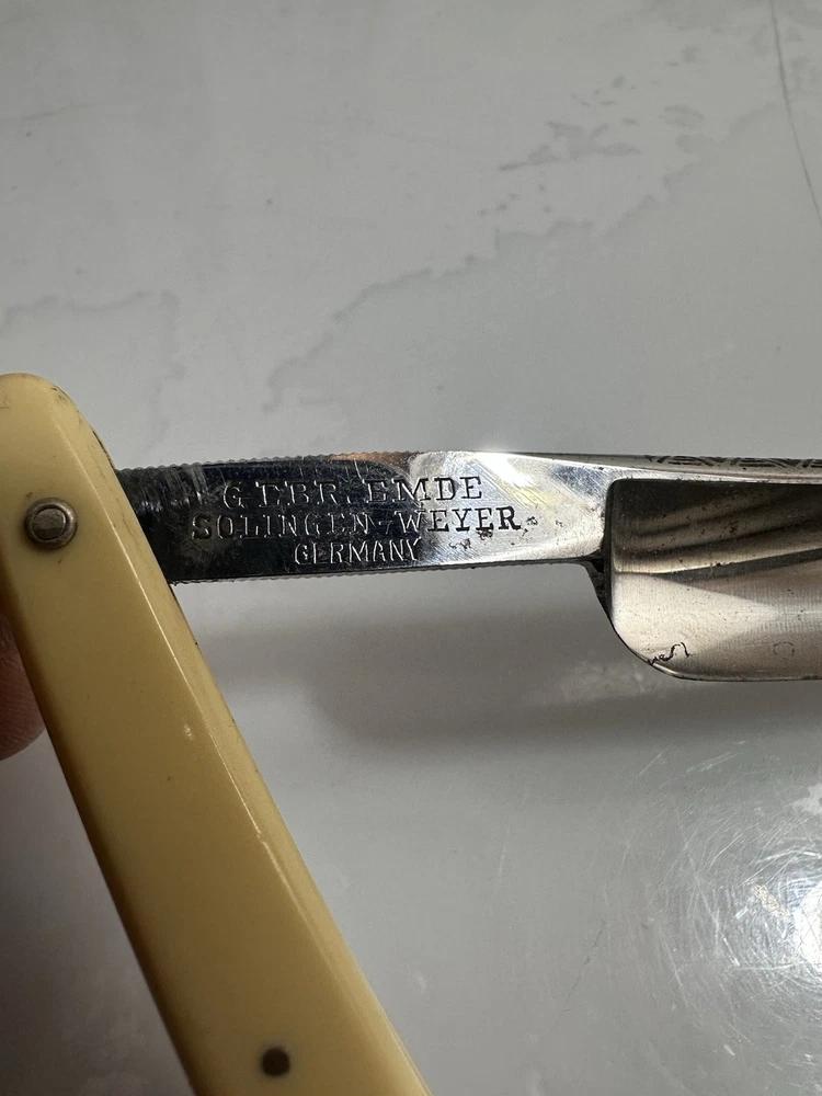 The Solingen Kiebitz 150 Friday Straight Razor features a unique yellow and white handle with intricate inlay details. This straight razor hails from Germany, known for its high-quality craftsmanship in the shaving industry. With a nod to tradition and a touch of style, the Solingen Kiebitz 150 Friday Straight Razor is a collector's item that combines functionality with artistry, making it a standout piece in any shaving collection.