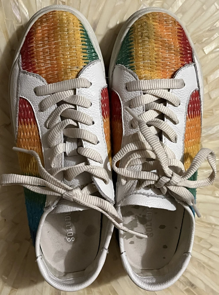 Soludos Ibiza Shoes Leather Rainbow Multicolor Ombre Weave Fabric Sneakers Women's Tag Size 8.5 Pre-owned mark on right toe area, light wear