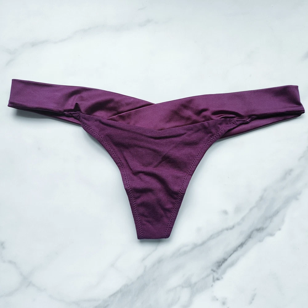 All photos taken by Goob's Closet & Boutique and may not be reused without permission. Imagine a thong-style panty that's all about embracing your curves while keeping things sleek with minimal back coverage and a low rise. But here's the kicker—it has this luxurious stretch satin waistband that feels like pure bliss against your skin. Plus, the front crossover waistband adds a flirty touch. The fabric is a blend of cotton, modal, and spandex that's so soft, it's like wearing clouds. And the cotton gusset? Keeps things breezy and comfy where it matters most. The best part? You can just toss it in the washing machine on a warm cycle for easy care. No fuss! Details Thong Style Minimal Back Coverage Low Rise Luxurious Stretch Satin Waistband Crossover Waistband at Front Ultra Soft Cotton Blend Body Style No. 570315638 Color: Wicked Plum Material Body: 46% Cotton, 47% Modal, 7% Spandex Gusset: 100 % Cotton Care Machine wash warm Measurements Soma Size S (Small) will fit US Size 4-6, Waist 28-29 inches, Hips 37.5-38.5 inches best. Soma Size M (Medium) will fit US Size 8-10, Waist 30-31 inches, Hips 39.5-40.5 inches best. Soma Size L (Large) will fit US Size 12-14, Waist 32.5-34 inches, Hips 42-43.5 inches best. Soma Size XL (Extra Large) will fit US Size 16-18, Waist 35.5-37 inches, Hips 45-46.5 inches best.
