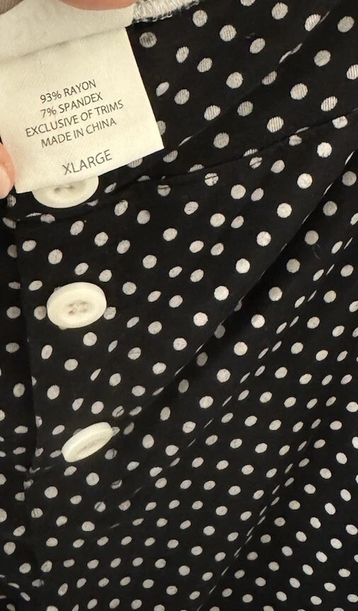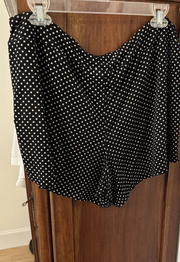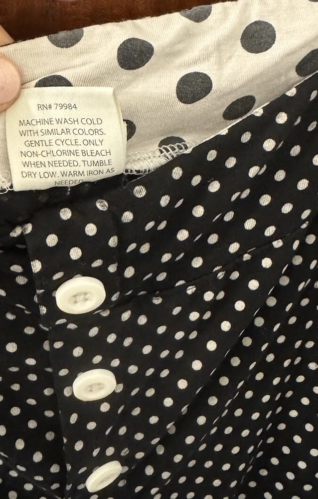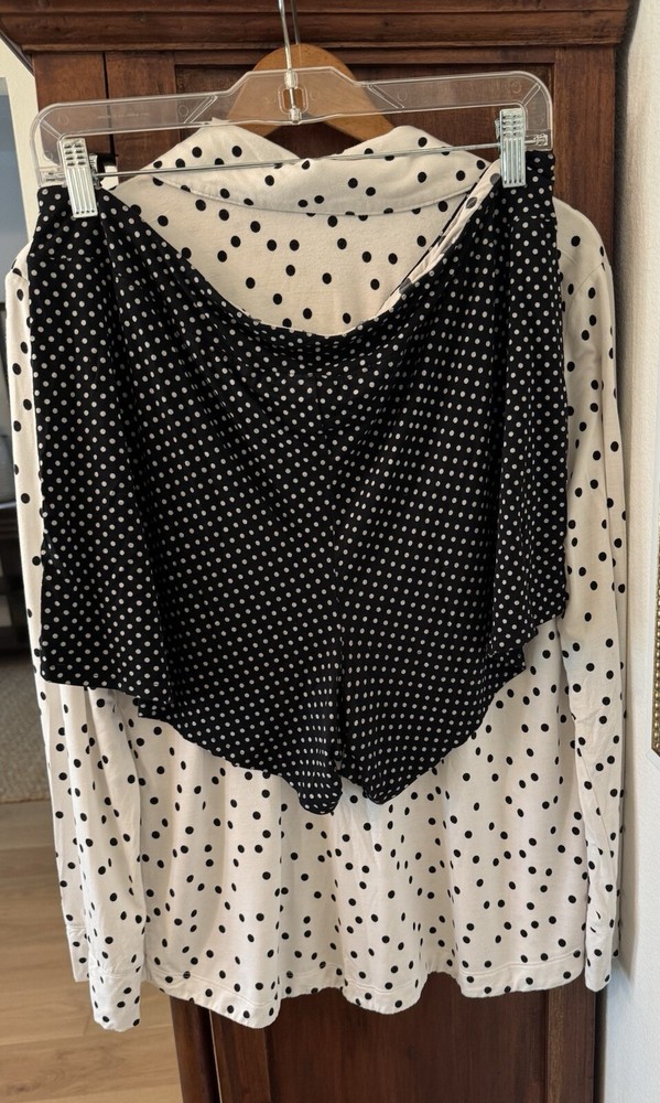 Note: two sizes in this pj set. Measurements: Large Top length is 26”, width is 22” (from armpit to armpit) and sleeve length is 24”. XL shorts have an elastic waist of 36”; with a 4” inseam. The shorts measure 13” from top to bottom. Soma Intimates women's pajama top and shorts. Top is size large and bottoms size XL. The black and white polka dot shorts reminiscent of a Dalmation's coat. Made with a blend of rayon and spandex, the fabric is soft and stretchy for a comfortable fit. The long sleeve top has buttons and is collared. The shorts are pull-on closure allowing for easy wear with 3 white decorative front buttons. The garment care is simple, as it is machine washable. This items are preowned but in good condition with no visible stains or flaws, unless specifically pointed out in photos. Color: We photograph items as accurately as possible; however, colors may vary depending on your monitor and the lighting.