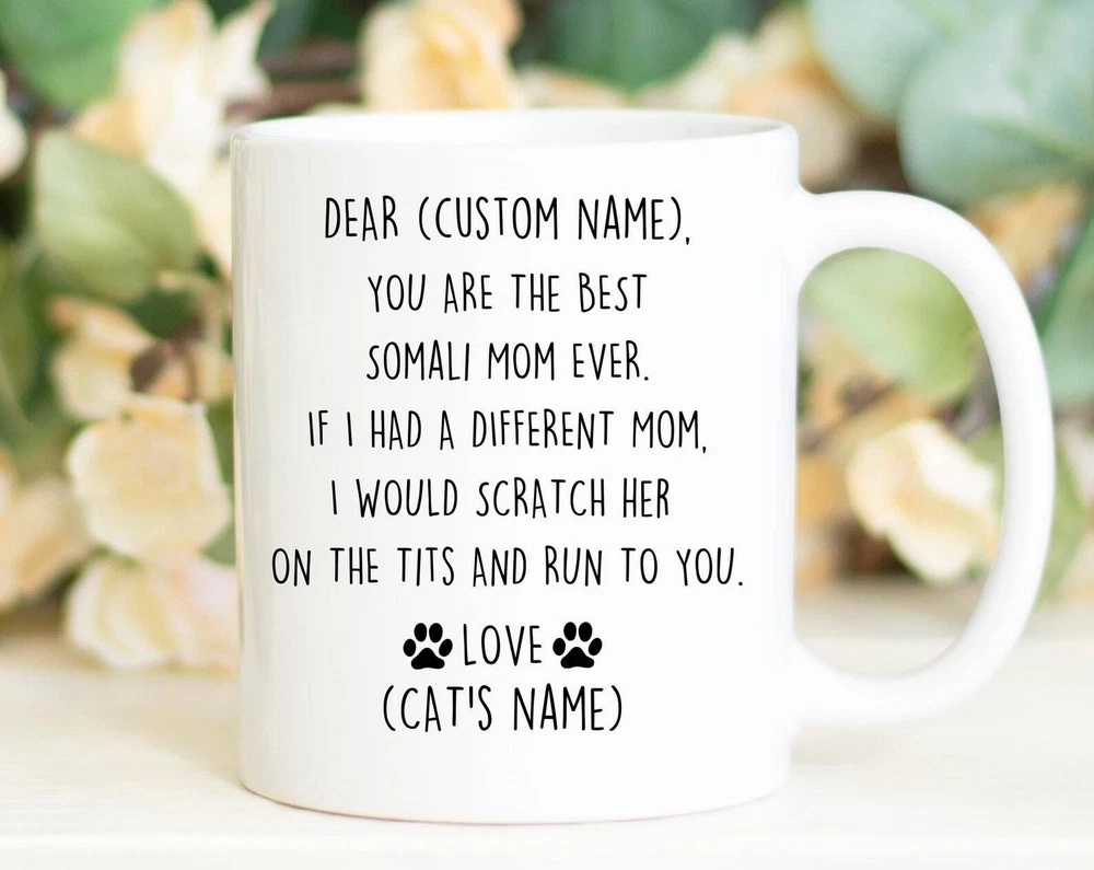Somali Cat Mom Birthday Gift Somali Cat Mom Chirstmas Gift Somali Cat Mom Valentine Somali Cat Mom Appreciation Best Somali Cat Mom Gift Product Details.. This high quality 11oz. ceramic white mug has a premium hard coat that provides crisp and vibrant color reproduction sure to last for years. Perfect for all hot & cold beverages. The highest quality printing possible is used. It will never fade no matter how many times you wash it. Material: 100% Ceramic. Print both sides. Dishwasher and Microwave Safe. High Gloss + Premium White Finish. Printed in the U.S.A. Personalized & Custom. We support personalized and custom mug to add custom, when placing an order, you can add notes to the "order note" in shipping address section. Also you can contact us directly via message. Shipping Info. Ready to ship in 1 to 2 business days, All products are made-to-order and proudly printed in the United States. Shipped by USPS and DHL, You will receive your order in 5-7 days. Replace & Refund. All products are defective during shipping broken, chipped will be replaced free of charge. You are not satisfied with the product, we will refund 100% money to you. If any other issues arise, please do not hesitate to message, we would be more than happy to assist you.