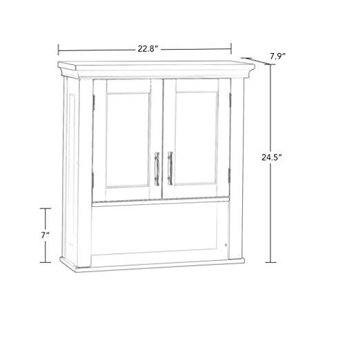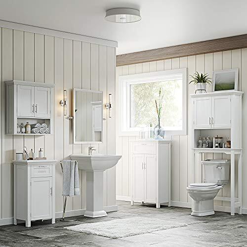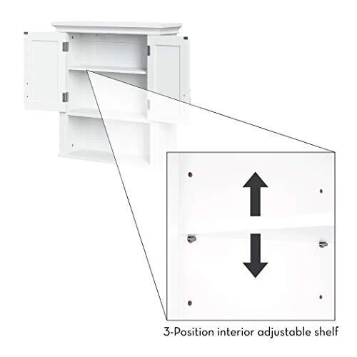 Streamlined Storage Solution Maximize your bathroom space with our sleek and functional Two-Door Bathroom Storage Wall Cabinet. Designed to keep your toiletries neatly tucked away, this cabinet features two concealed doors that provide ample storage for all your essentials. The open display shelf adds a touch of style, allowing you to showcase your favorite accents or decorative pieces. Practical and Stylish Design Crafted from high-quality painted MDF with a crisp white painted finish, this cabinet seamlessly blends functionality and aesthetics. The inset doors and side panels, along with the mirror satin handles, lend a modern and sophisticated appeal. Enjoy the convenience of magnetic close doors for effortless access, while the coved top shelf adds a touch of elegance. Versatile Organization Options Offering versatile storage solutions, this cabinet boasts a fixed open shelf and adjustable interior shelf, allowing you to customize the layout to suit your needs. Whether you need to organize towels, toiletries, or display your favorite decor pieces, this cabinet provides ample space for all your bathroom essentials. Additional dimensions: Top shelf: 22.81" W x 7.88" D Inner shelves: 19.69" W x 6.06" D Open shelf: 19.75" W x 7.13" D x 7.06" H -Hide toiletries behind doors -Open shelf for displaying accents -Includes fixed top and interior shelves -Painted MDF with white finish -Wall mount expands bathroom storage ASSEMBLED SIZE: 22.8" W x 7.9" D x 24.5" H. This product holds up to 25lbs per shelf for a total weight of 75lbs. Our bathroom wall cabinet lets you tuck toiletries out of sight behind doors, while the open bathroom shelf is ideal for showing off decorative accents. It's the perfect balance of concealed and open wall cabinet storage. ELEGANT DESIGN FEATURES: Elevate your bathroom storage space with this stylish cabinet. Inset doors, interior shelves, a coved top, and two-tone satin and mirrored handles make this bathroom floor cabinet a wonderful addition to your home. EASY-SLIDE DRAWER: No more wrestling with stubborn storage cabinets with drawers. This bathroom cabinet storage piece features a smooth-gliding drawer that opens and closes effortlessly, so you can grab what you need with ease. INTERIOR ADJUSTABLE SHELF: Our bathroom cabinet with a drawer can adjust to your needs by simply changing the inner shelf height. With bathroom organizers and storage cabinet options like this, you can customize your cabinet storage to hold taller or shorter items. DURABLE, STURDY CONSTRUCTION: Built to last, this bathroom furniture piece is crafted with durable MDF for enduring use. Unlike flimsy bathroom cabinets, our towel storage solution for small bathrooms boasts solid construction that resists warping and wobbling.