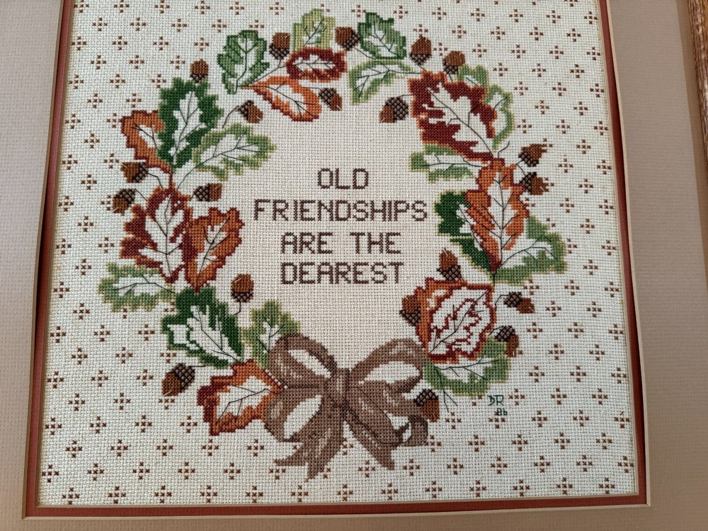 Handmade cross stitch picture. Measures 20 x 21". Nicely matted and framed. Check out my other listings. I sell a variety of new and vintage items. Browse by see other items , or at my store Songbird’s treasure. Add me as a favorite seller or store. I am constantly adding new items. Smoke free, pet free home! BUY WITH CONFIDENCE! Same user I.D. since 2003. I strive to provide quality items and excellent customer service. Thanks for looking and come back again!