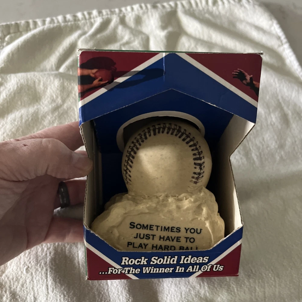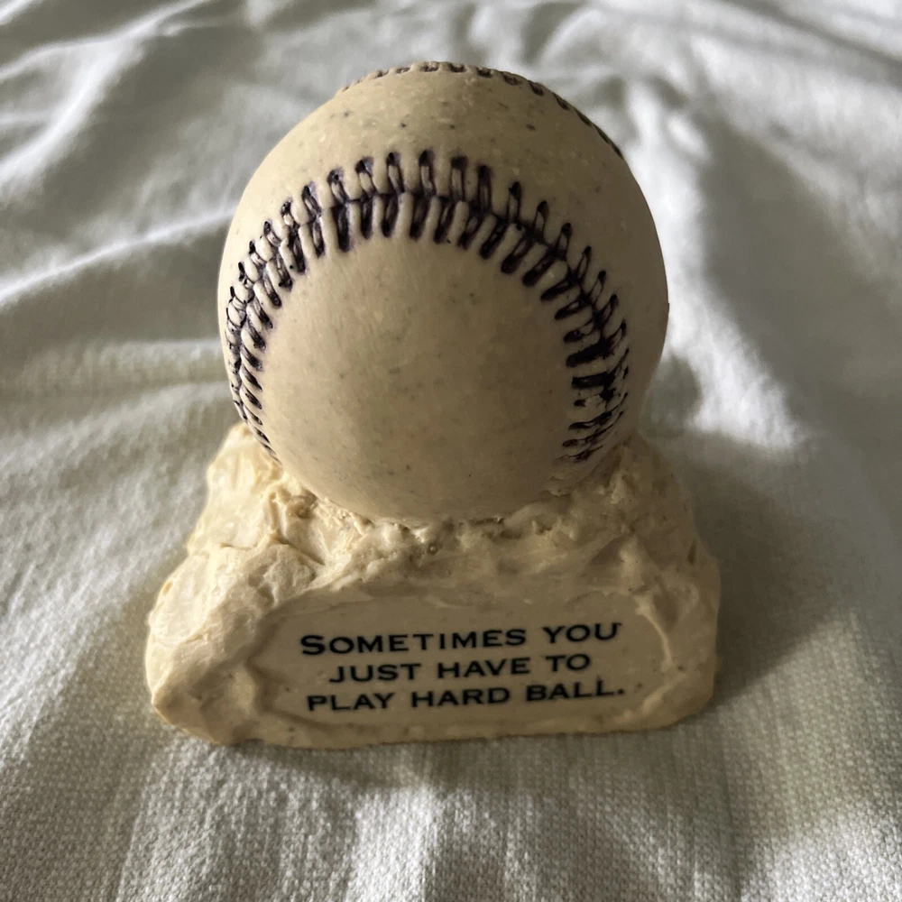 This vintage and antique baseball desk paperweight is the perfect addition to any collection. Measuring small in size, it features a multicolor design and is made of resin material. The paperweight is perfect for any baseball fan and features a motivational quote that reads "Sometimes You Just Have To Play Hardball". In very nice condition Comes in original packaging made in 1997 Great gift for any baseball fan