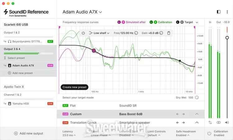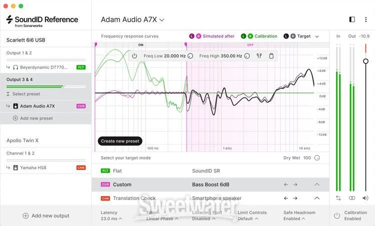 This Software Delivers Mixes That Translate Everywhere At Sweetwater, we often say, "If you can't hear it, you can't mix it." This conundrum certainly doesn't apply to Sonarworks SoundID Reference, an intelligent software that calibrates your speakers and headphones to ensure consistent, accurate monitoring in an endless array of production environments. SoundID Reference works by applying a calibration profile to your monitoring output, supplying you with a ruler-flat response across all audible frequencies. The software is a breeze to use — most users find that they can complete the calibration process in less than 20 minutes. SoundID Reference permits you to make custom, on-the-fly curve adjustments, and you can save as many profiles as you'd like, which makes moving between different speakers, headphones, and rooms seamless and effortless. You can also audition your mixes on more than 20 different simulated devices without leaving your workstation. Think of SoundID Reference as Sweetwater is an Authorized Sonarworks Dealer Genuine New Item Sweetwater's 2-year warranty Sonarworks SoundID Reference Plug-in for Speakers & Headphones with Measurement Speaker and Headphones Calibration Software with Measurement Microphone - Mac/PC Standalone, VST, AU, AAX Native This Software Delivers Mixes That Translate Everywhere At Sweetwater, we often say, "If you can't hear it, you can't mix it." This conundrum certainly doesn't apply to Sonarworks SoundID Reference, an intelligent software that calibrates your speakers and headphones to ensure consistent, accurate monitoring in an endless array of production environments. SoundID Reference works by applying a calibration profile to your monitoring output, supplying you with a ruler-flat response across all audible frequencies. The software is a breeze to use — most users find that they can complete the calibration process in less than 20 minutes. SoundID Reference permits you to make custom, on-the-fly curve adjustments, and you can save as many profiles as you'd like, which makes moving between different speakers, headphones, and rooms seamless and effortless. You can also audition your mixes on more than 20 different simulated devices without leaving your workstation. Think of SoundID Reference as insurance for mix translation. With it in your toolkit, you can be confident that your mixes will sound as good as gold everywhere. Achieve ultra-accurate monitoring — effortlessly Calibrating your studio monitors with SoundID Reference is a piece of cake. Just connect the included measurement microphone to your audio interface, fire up the software, and you're good to go. And since it comes with more than 280 ready-to-use headphone calibration profiles, tailoring the software to your headphones is even easier. SoundID Reference's calibration profiles create a target frequency response that's flat across all audible frequencies. This calibration software also allows you to make custom, real-time adjustments to the target curve for profiles that are tailored to your individual application. And since you can save as many profiles as you'd like, switching between different speakers, headphones, and rooms is 100% seamless. Overflowing with pro-level features Sonarworks SoundID Reference is packed with an astounding number of pro-requested features. For starters, the software includes both DAW plug-in and standalone desktop application components. You get three filter modes: zero latency, mixed, and linear phase, along with extra DSP processing controls, including mono, dry/wet, and safe headroom. SoundID Reference's Translation Check feature alone is worth the software's price of admission, enabling you to audition your mixes on more than 20 different simulated devices. The SoundID Reference application includes MIDI mapping for various parameters, as well as user presets for switching between predefined output devices/channel pair combinations. Sonarworks SoundID Reference Features: Calibrates your speakers and headphones to ensure consistent, accurate monitoring Delivers a ruler-flat response across all audible frequencies Speaker calibration process typically takes less than 20 minutes Comes with an XLR measurement microphone with a custom-tailored calibration profile 280 ready-to-use headphone profiles for instant headphones calibration Permits you to make custom, on-the-fly curve adjustments to your profiles Save unlimited profiles for seamlessly moving between different speakers, headphones, and rooms Audition your mixes on more than 20 different simulated devices without leaving your workstation 3 filter modes: zero latency, mixed, and linear phase Extra DSP processing controls: mono, dry/wet, and safe headroom MIDI mapping for various parameters User presets for switching between predefined output devices/channel pair combinations Includes both DAW plug-in and standalone desktop application components Specification Detail Software Type Sound Calibration Software Platform Mac, PC Upgrade/Full Full Download/Boxed Boxed with Sonarworks Measurement Microphone Bit Depth 64-bit Format AAX, VST, AU Hardware Requirements - Mac Intel Core 2 Duo or higher, 4GB RAM minimum Hardware Requirements - PC Intel Core 2 Duo / AMD Athlon 64 X2 or higher, 4GB RAM minimum OS Requirements - Mac macOS 10.14 or later OS Requirements - PC Windows 10 or later RETURN INFORMATION Returns Not Accepted
