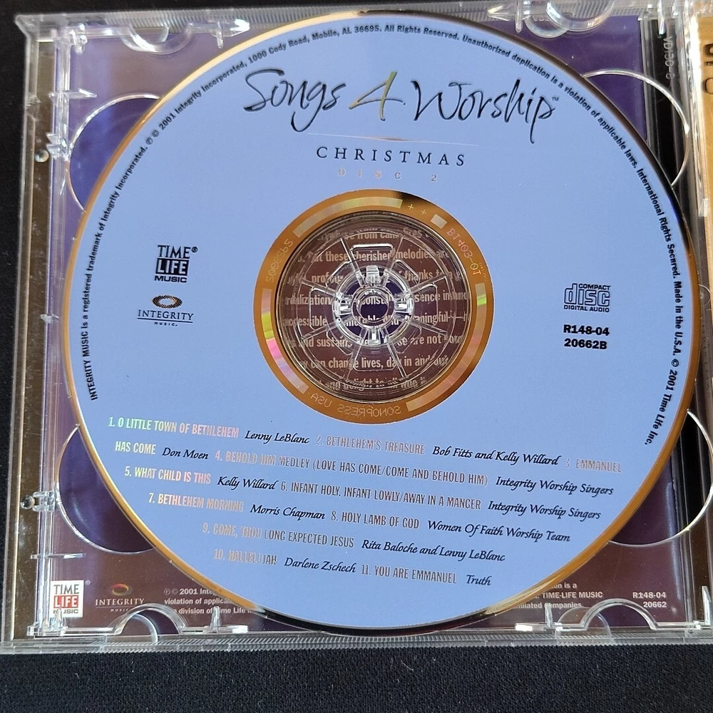 Get into the Christmas spirit with this wonderful collection of Songs 4 Worship: Christmas. This CD features a variety of artists and is perfect for anyone who loves Christian music. With a run time of 74 minutes, you'll have plenty of time to enjoy all of the songs on this 2 disc set. The record label, TIME/LIFE Music, released this CD in 2001 and it's a great addition to any music collection. This CD is perfect for Christmas and is sure to bring joy to anyone who listens to it. Don't miss out on this wonderful opportunity to own a piece of Christmas music history.