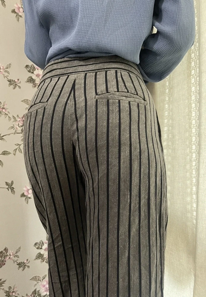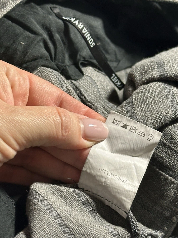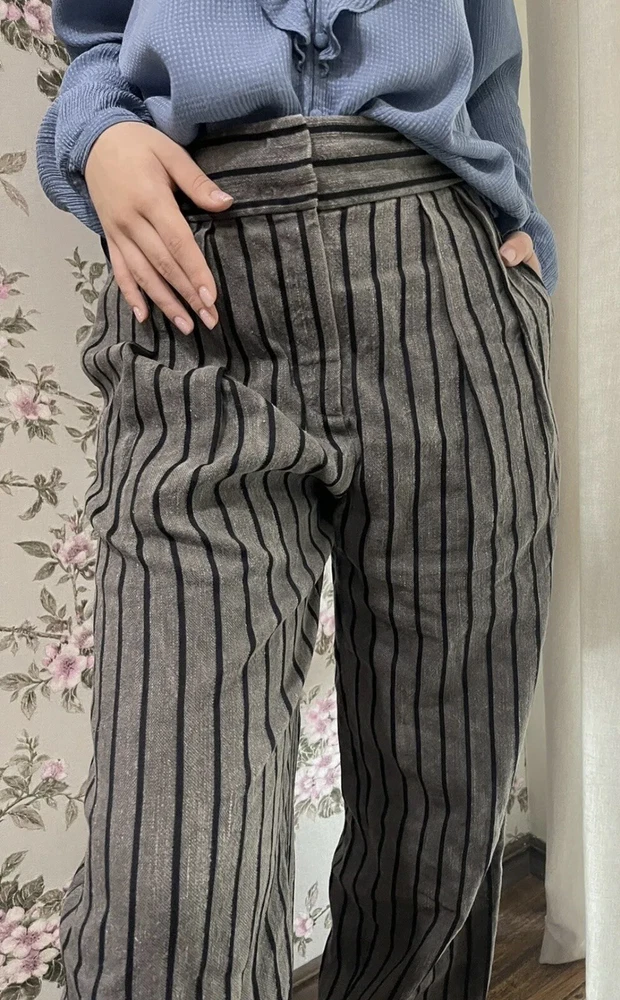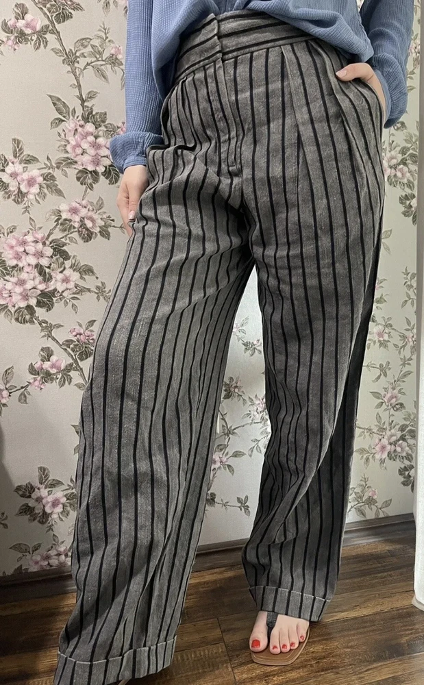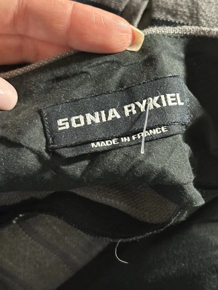 Elevate your fashion game with these Sonia Rykiel Resort Linen Long Striped Baggy Pants. These designer pants are perfect for both casual and formal occasions with their relaxed fit and trendy striped pattern. The pants are made of high-quality linen material and feature a convenient zipper closure and pockets for added functionality. These stylish pants are perfect for the modern woman who wants to make a statement with her fashion choices. The pants are available in size 40 and the gray color makes them versatile for any season, whether it's winter, summer, fall, or spring. Add these pants to your wardrobe and elevate your fashion game to the next level! Condition: preowned very good condition Size: 40 good fits on L Length: 108cm Waist: 80cm Hips: 104 m Fabric: linen;cotton For additional measurements and photos please write me ❤️
