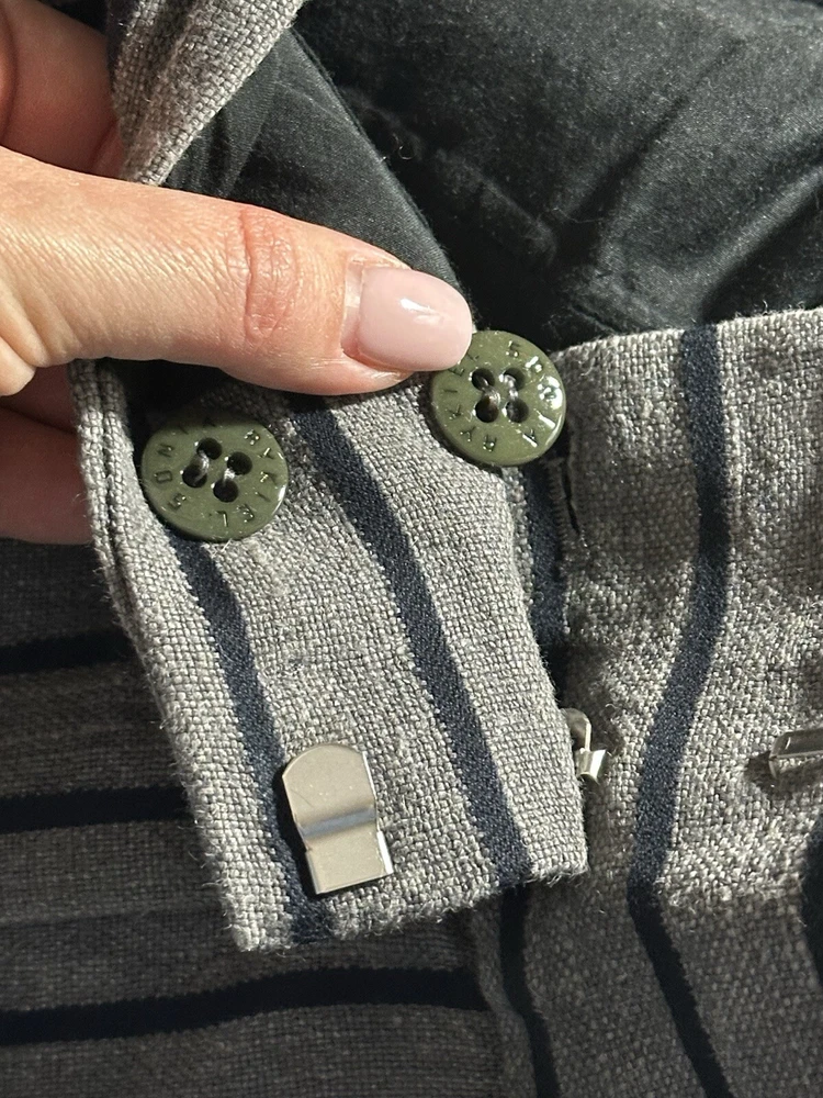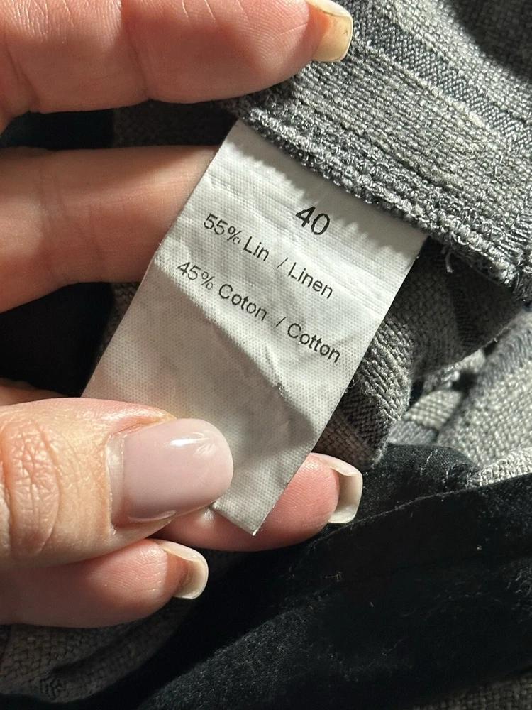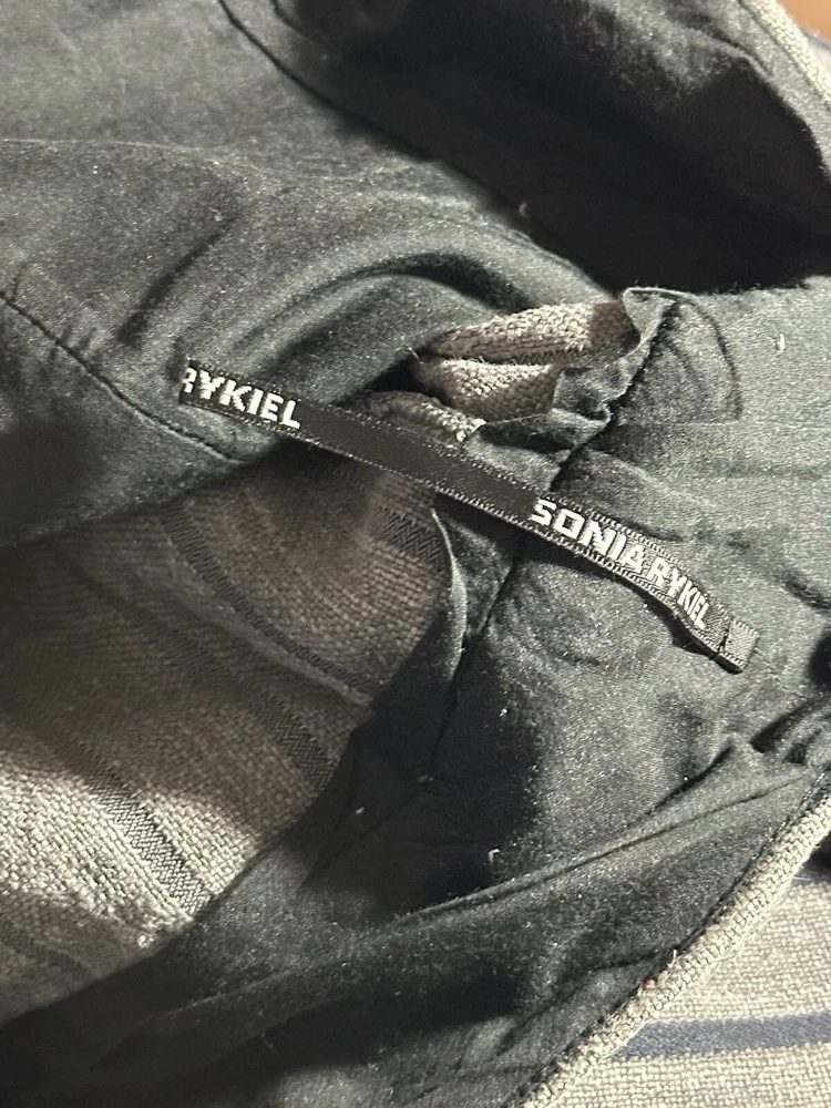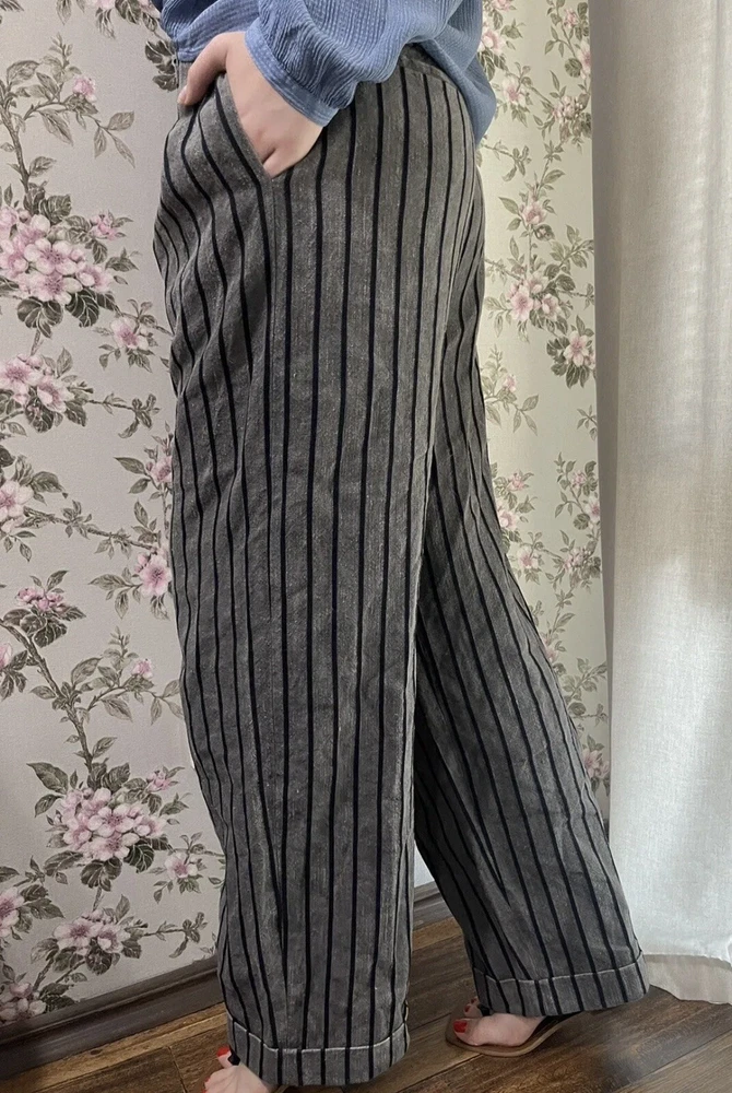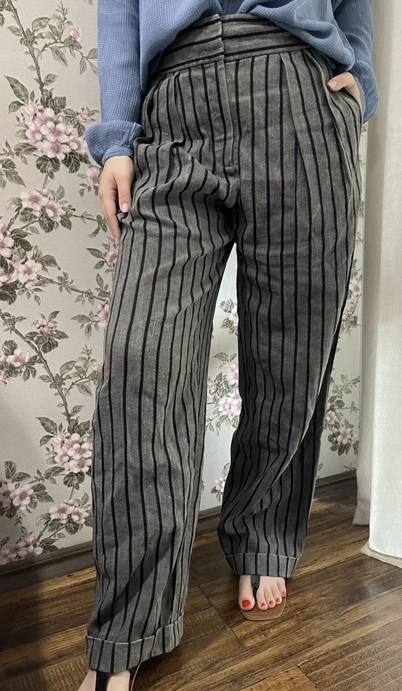 Elevate your fashion game with these Sonia Rykiel Resort Linen Long Striped Baggy Pants. These designer pants are perfect for both casual and formal occasions with their relaxed fit and trendy striped pattern. The pants are made of high-quality linen material and feature a convenient zipper closure and pockets for added functionality. These stylish pants are perfect for the modern woman who wants to make a statement with her fashion choices. The pants are available in size 40 and the gray color makes them versatile for any season, whether it's winter, summer, fall, or spring. Add these pants to your wardrobe and elevate your fashion game to the next level! Condition: preowned very good condition Size: 40 good fits on L Length: 108cm Waist: 80cm Hips: 104 m Fabric: linen;cotton For additional measurements and photos please write me ❤️
