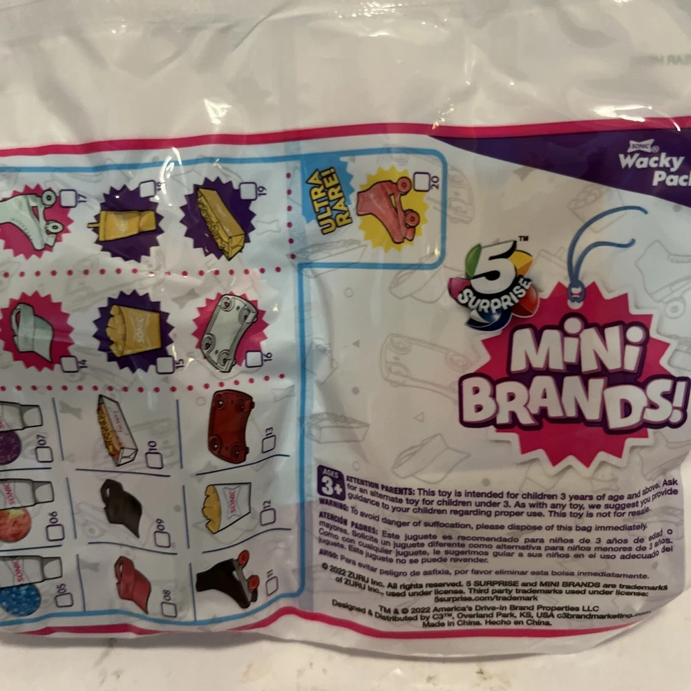 Sonic Mini Brands # 9 Wacky Pack New Zuru Drive In 5 Surprise Sealed Bag