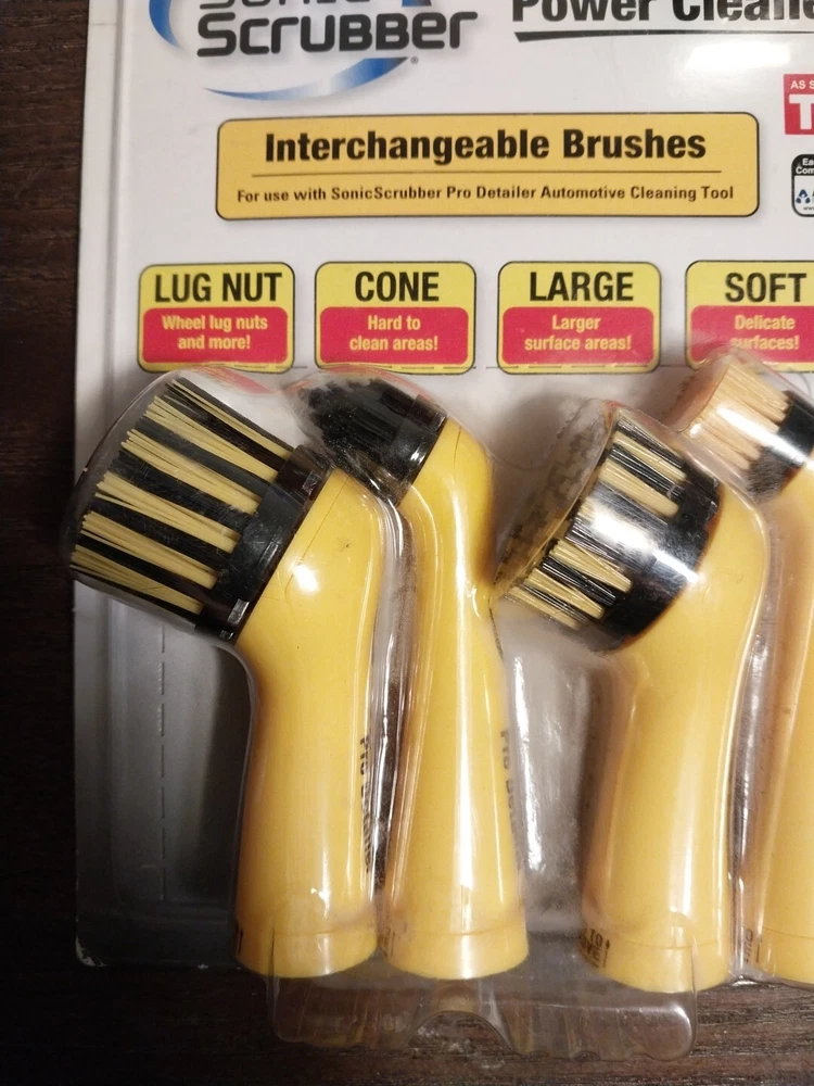 The Sonic Scrubber Pro Detailer Power Cleaner includes a pack of 4 interchangeable brushes designed for heavy-duty cleaning tasks. It features twist removal functionality, making it easy to switch between brushes, and is lightweight for comfortable use. This all-purpose cleaner is suitable for automotive cleaning and is cruelty-free. The brushes are multifunctional and attached to the scrubber for convenience, providing a versatile cleaning solution for various surfaces.