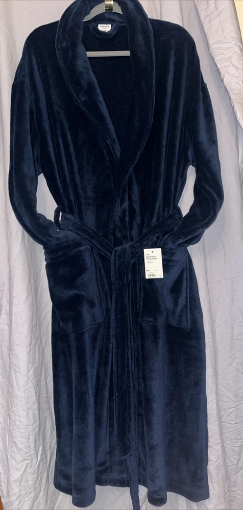 Indulge in luxury and comfort with this Sonoma BathRobe. Made of 100% polyester faux fur, this robe is perfect for lounging and pampering. The mineral navy color adds a touch of elegance to the robe's collared neckline and long sleeves with tie closure. This unisex bathrobe comes in size L/XL and features 2 sets of belt loops and 2 pockets. It is also machine washable for easy care. Ideal for spa days or relaxing evenings at home, this Sonoma BathRobe is the perfect addition to your loungewear collection.