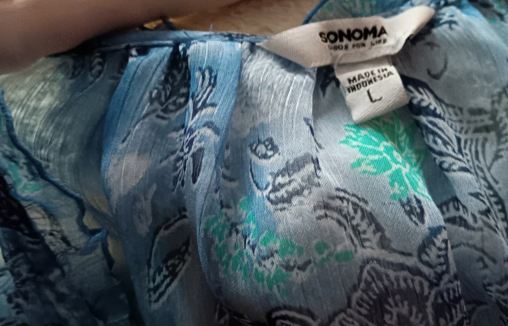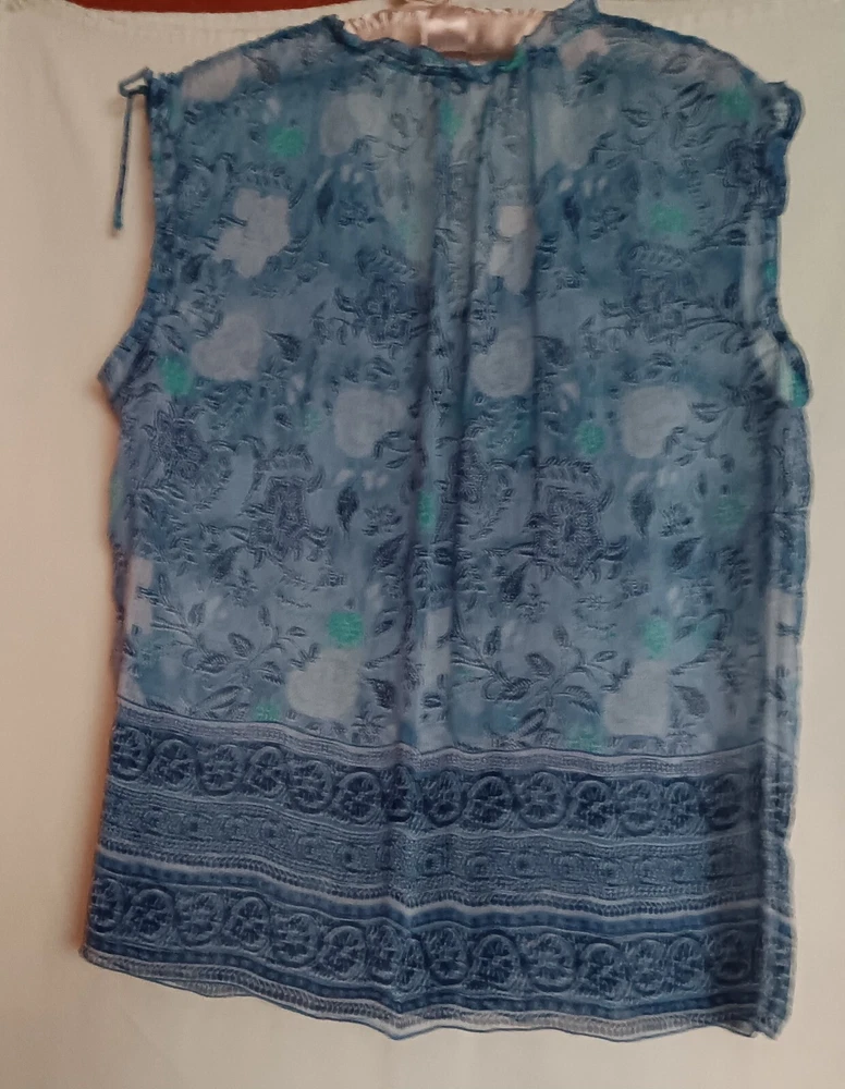 Add a splash of color to your wardrobe with this beautiful Sonoma sleeveless top. The floral pattern and pleated accents give it a playful, yet elegant look. The scoop neckline and pullover closure make it easy to wear, while the lightweight gauze fabric ensures breathability and comfort. Perfect for summer parties or casual outings, this regular fit top is machine washable and easy to care for. The collarless, unlined design adds to its casual appeal, making it a versatile addition to any wardrobe. Available in size L, this colorful blouse is a must-have for any fashion-forward woman.