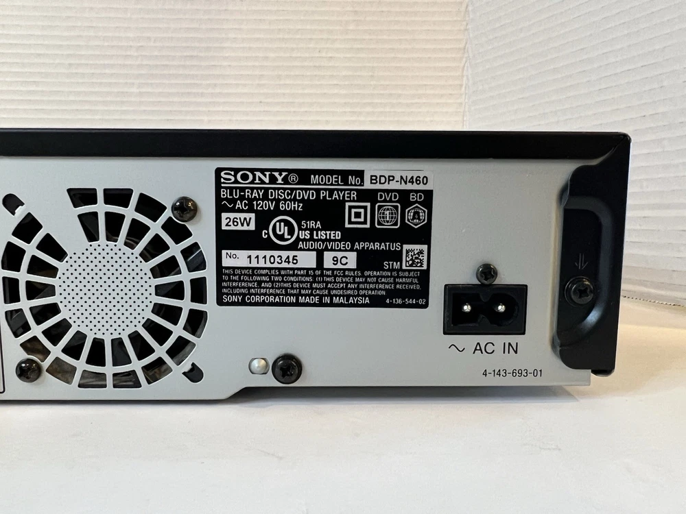 Sony BDP-N460 Blu-Ray DVD Player Wired w/ Remote HDMI Cable Power Cord TESTED & WORKING. Bottom tabs on Remote broken ; latch is good.