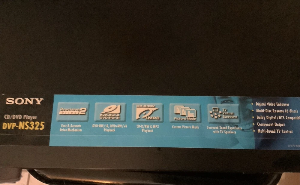 Sony CD DVD Player DVP-NS325, Dolby Digital, DTS Digital out In Black with Original Remote, MP3,DVD RW R ! CD R RW, Picture Mode, Surround , See photos, includes RCA cables and 5 Movies and 3 Music CD. C1