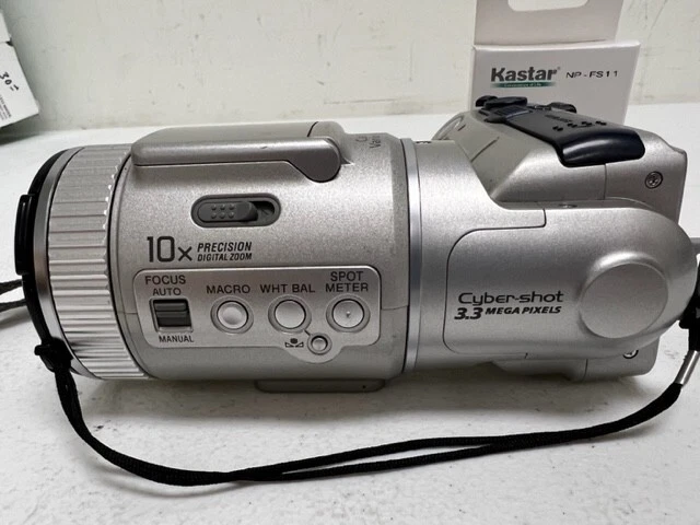 This Sony Cyber-Shot DSC-F505V digital camera is a great addition to your collection. With a maximum resolution of 3.3 MP and 10x optical zoom, you can capture stunning images. It comes in a sleek silver color and is a digital SLR type camera. The camera is equipped with a Lithium-Ion battery and has a weight of 16.75 Oz. In addition to photo capturing, this camera also has features such as date/time stamp and USB connectivity. The Sony Cyber-shot series is known for its quality and this camera is no exception. It is perfect for both personal and professional use. New battery no charger