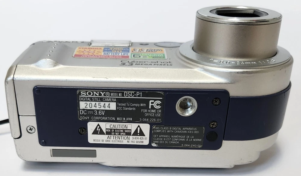 What You Will Be Receiving: Sony Cyber-Shot DSC-P1 3.3MP Digital Camera Silver Untested. Includes Battery. No Charger and No Memory Card. Battery Needs to be Charged. Please see photos for details. Tracking number provided once shipped (Priority) Message for any Questions!