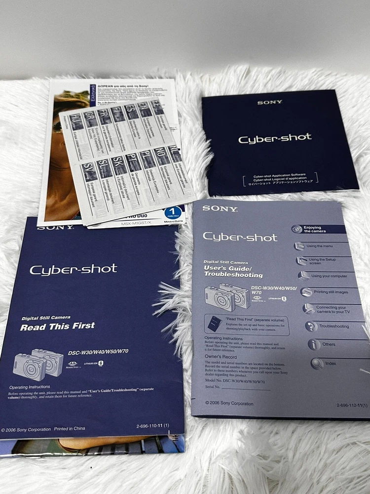This listing is for a fully working Sony Cybershot DSC-W50 6.0MP Silver Digital Camera with its original box. Camera is fully tested & fully works. Camera is in fantastic condition, with very light use and very minor scratches in places. Comes with charger, av leads, software disk, manual and original box. Sd card is not included (readily available). Red camera shown in the photos is for demonstration only and is NOT INCLUDED! Any questions please feel free to ask.