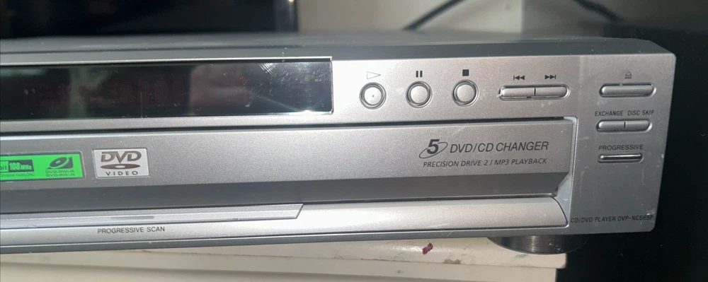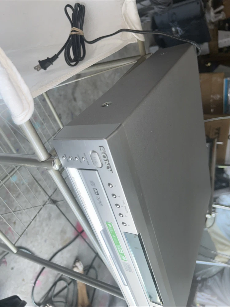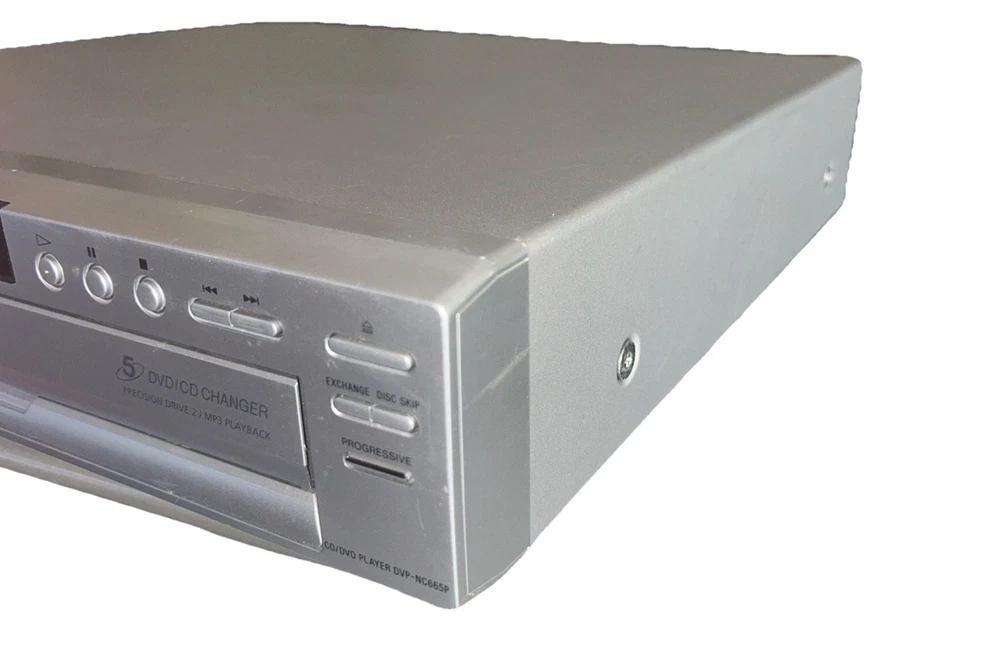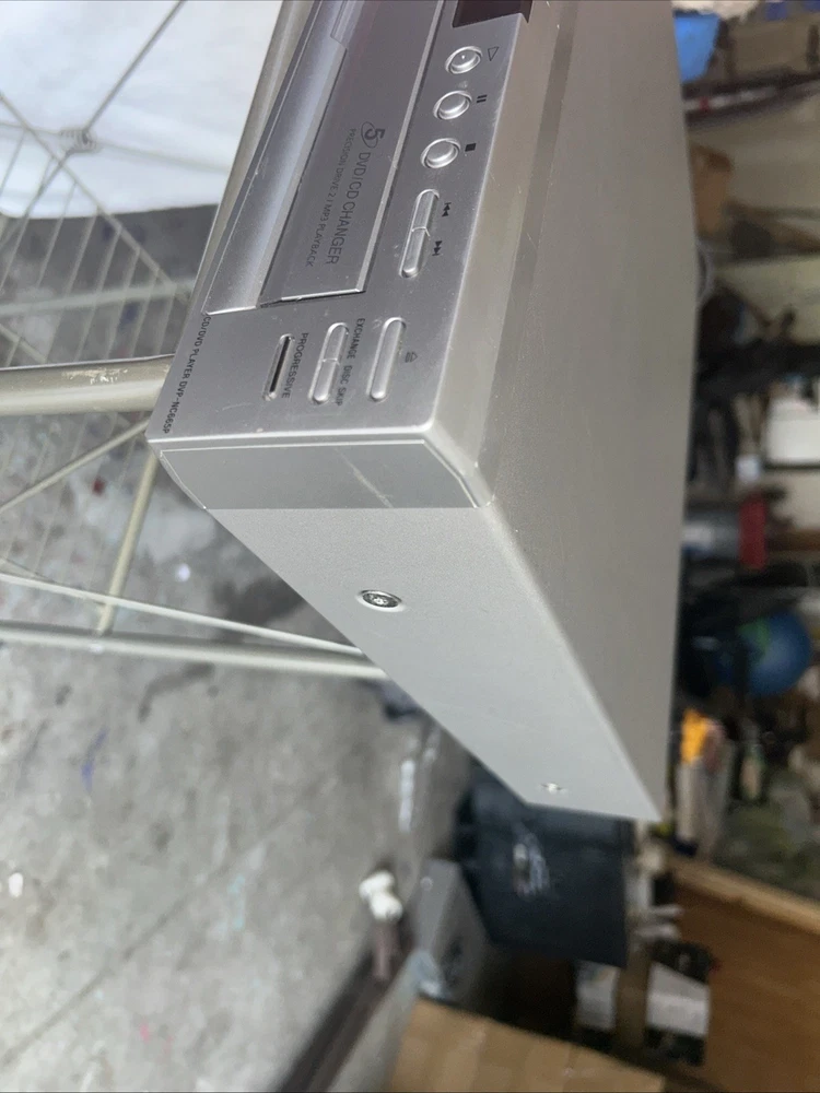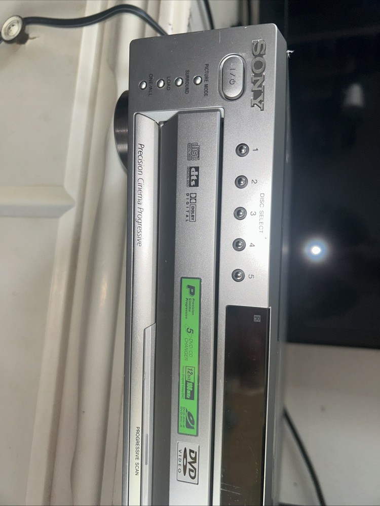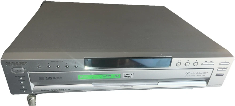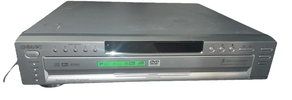 The Sony DVP-NC665P 5 Disc CD/DVD Player Carousel Changer is a versatile unit that allows you to play both CD and DVD formats. It features a sleek silver design and offers various connectivity options such as Digital Audio Optical TOSLINK, Composite Video RCA, Digital Audio Coaxial RCA, Component Video Out, Line Out, and S Video Out. With its 5 disc changer feature, you can conveniently play up to 5 discs without having to manually insert them. This model is reliable and has been tested to ensure functionality, although it does not come with a remote. Overall, this Sony DVD CD changer is a great addition to any entertainment setup. Small scratches on top of unit. Functions perfectly