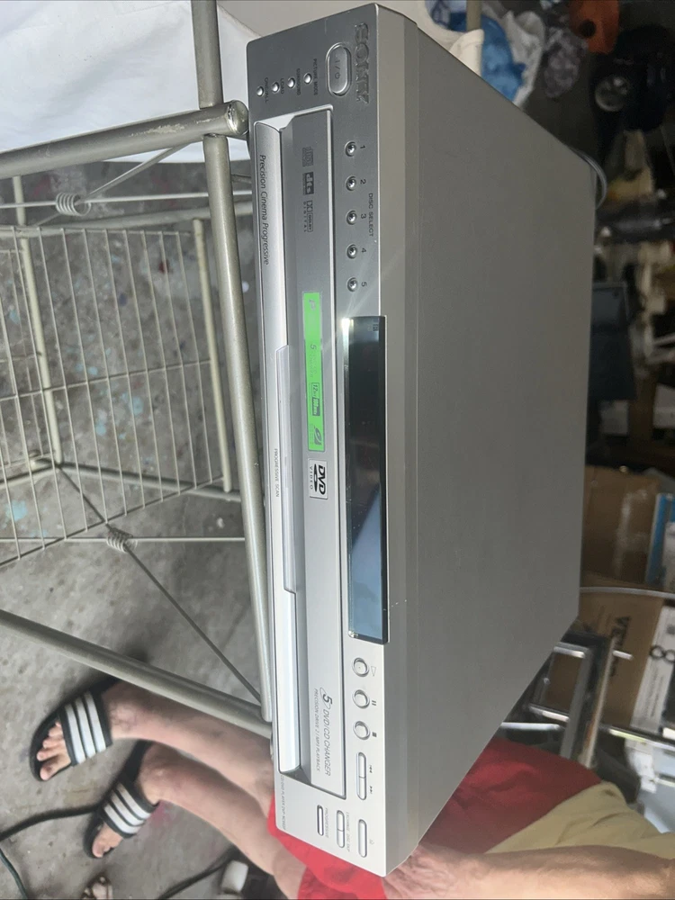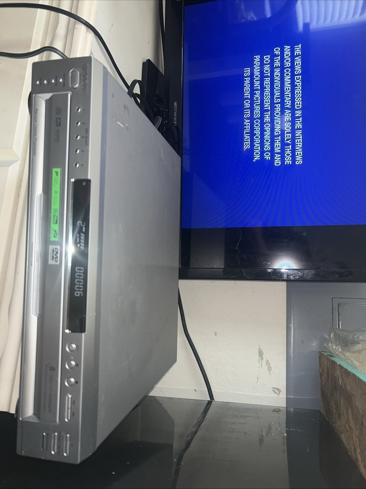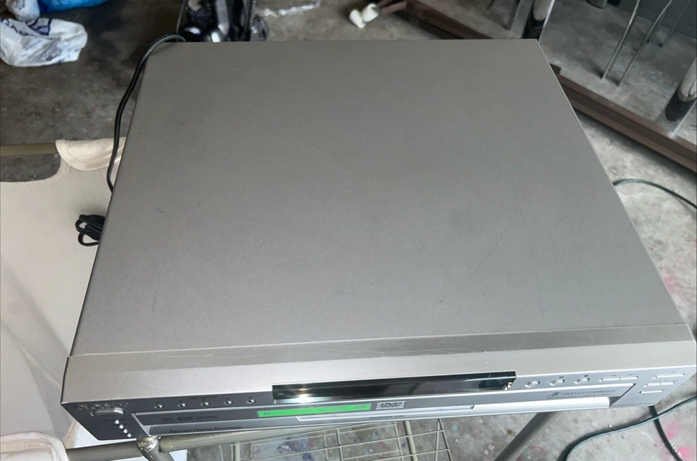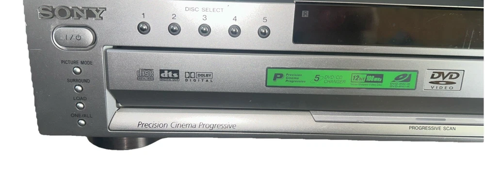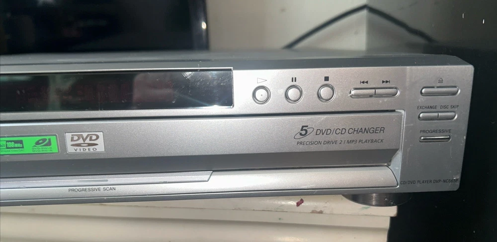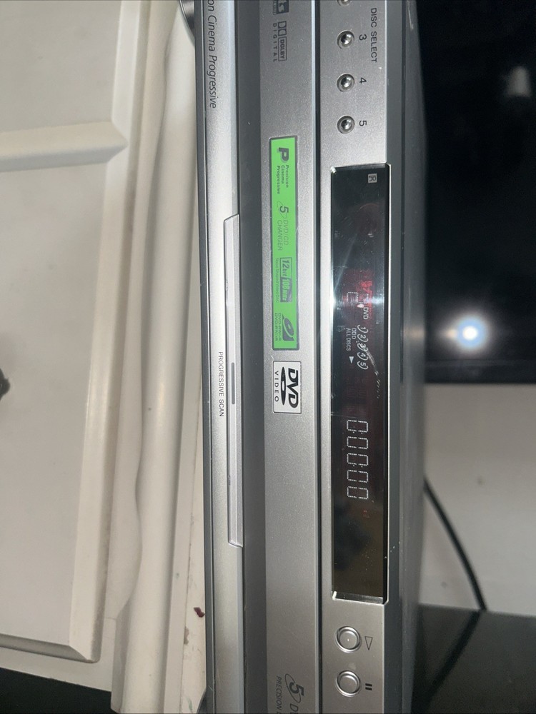 The Sony DVP-NC665P 5 Disc CD/DVD Player Carousel Changer is a versatile unit that allows you to play both CD and DVD formats. It features a sleek silver design and offers various connectivity options such as Digital Audio Optical TOSLINK, Composite Video RCA, Digital Audio Coaxial RCA, Component Video Out, Line Out, and S Video Out. With its 5 disc changer feature, you can conveniently play up to 5 discs without having to manually insert them. This model is reliable and has been tested to ensure functionality, although it does not come with a remote. Overall, this Sony DVD CD changer is a great addition to any entertainment setup. Small scratches on top of unit. Functions perfectly