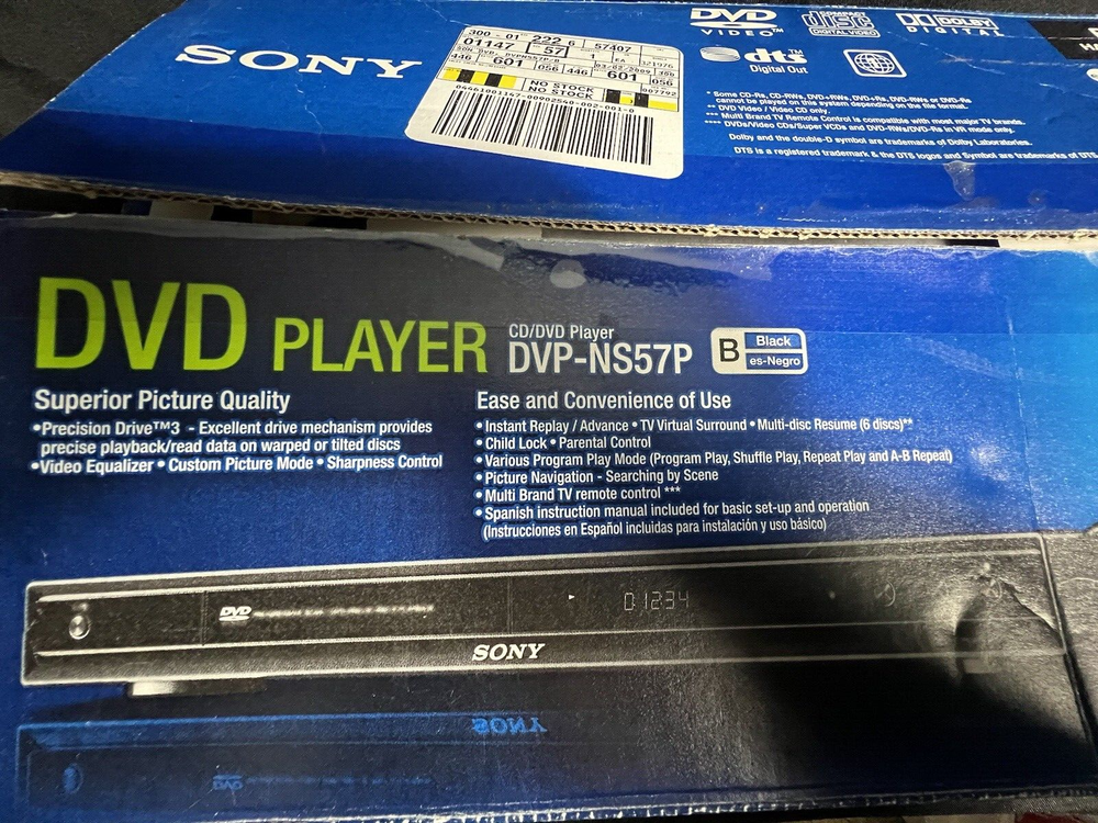 The Sony DVP-NS57P is a feature packed DVD player at an affordable price. This Sony DVD player's 12bit/108MHz Video DAC minimizes digital artifacts and you get finer picture. This Single Disc Player's precision drive system ensures that you can play even damaged DVDs with accurate error correction. The Sony DVP-NS57P features progressive scan to accurately reproduce images closer to the original source. This Sony DVD player offers three virtual sound modes for realistic surround sound from TV stereo speakers. With this Single Disc Player's multi-disc resume feature, even if you stop a movie in the middle, it will remember the resume point of up to 6 disks. The Sony DVP-NS57P offers parental control to prevent children from viewing inappropriate channels and movies.