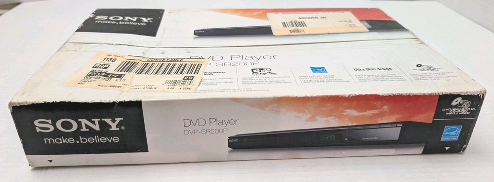 Type:DVD PlayerExterior Color:BlackModel:DVP-SR200PHeight:1.26inVideo Dac:12 Bit / 108MHzDepth:8.23inWeight:2.65lb.Video Output System:NTSC, PalFeatures:JPEG Slideshow, Pan & Scan Conversion, Parental Lock, Letter Box Conversion, Video Dac, Audio Dac, Progressive ScanUPC:0027242752665Outputs:Analog Audio X 1, Composite X 1, Digital Audio Coaxial RCA, Component X 1Playable Media Format:DVD-R Dual Layer, CD, SVCD, DVD+R Dual Layer, DVD-RW, JPEG, DVD-R, DVD, VCD, CD-R, DVD+RW, CD-RW, DVD+RFront Panel:Composite Video OutputAudio Dac:16 Bit / 192kHz_desc_:Enjoy superb picture and sound and take your movie viewing experience notches higher with the Sony DVP-SR200P, which is a progressive scan DVD player that lets you enjoy videos in high-quality. The Precision Drive 3 system in this Sony DVD player enables you to play all those warped or damaged discs you had long discarded without compromising on the picture quality. In addition, Precision Cinema Progressive technology in the Sony DVP-SR200P assures clarity of pictures with sharper and more vibrant images. Moreover, the twin laser pick up system in this Sony DVD player accurately reads the disc contents and begins your entertainment faster than ever. Plus, this progressive scan DVD player features integrated Dolby Digital and DTS decoders that offer immersive surround sound effect. What’s more, this Sony DVD player is compatible with DVD-video, MP3, JPEG, and other media formats ensuring versatility.Number of Discs:1Remote Control:Multibrand, StandardPicture Control:ZoomMPN:DVP-SR200P/BVideo Upconversion:480pBrand:Sonygtin13:0027242752665Progressive Scan:With Progressive ScanOn Screen Display:YesSurround Sound:Built-In Dolby Digital Decoder, Virtual Surround, Dolby Digital (Digital Out Only)Width:12.6in